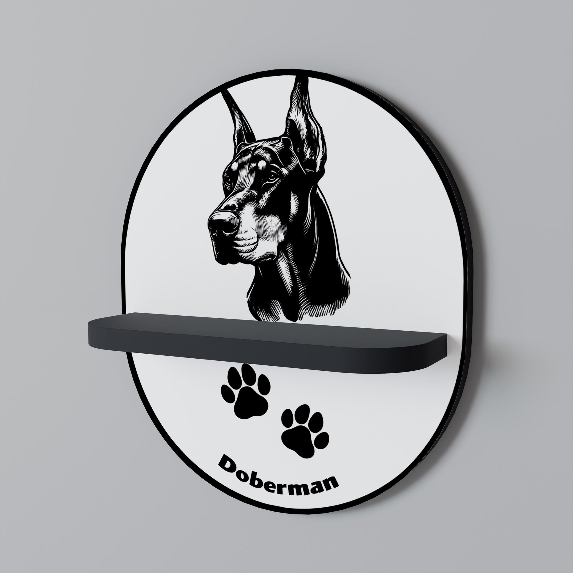 DOBERMAN DOG Oval Art Shelf In Black Finish