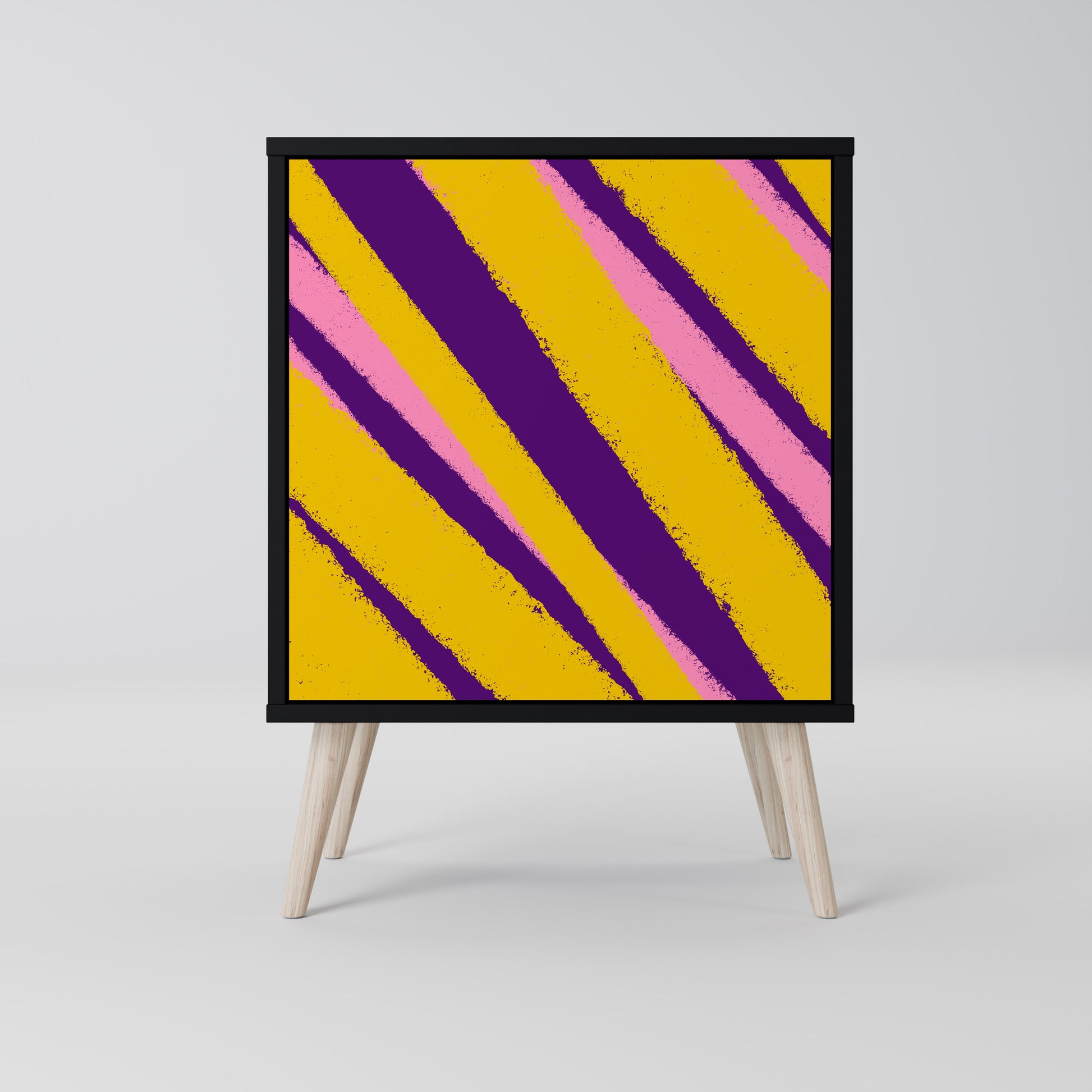 This compact yet remarkably elegant piece of furniture impresses with its minimalist design, perfectly fitting into both modern and classic interiors. The black body emphasizes the furniture’s bold character, while the fronts with a unique print add an artistic touch.