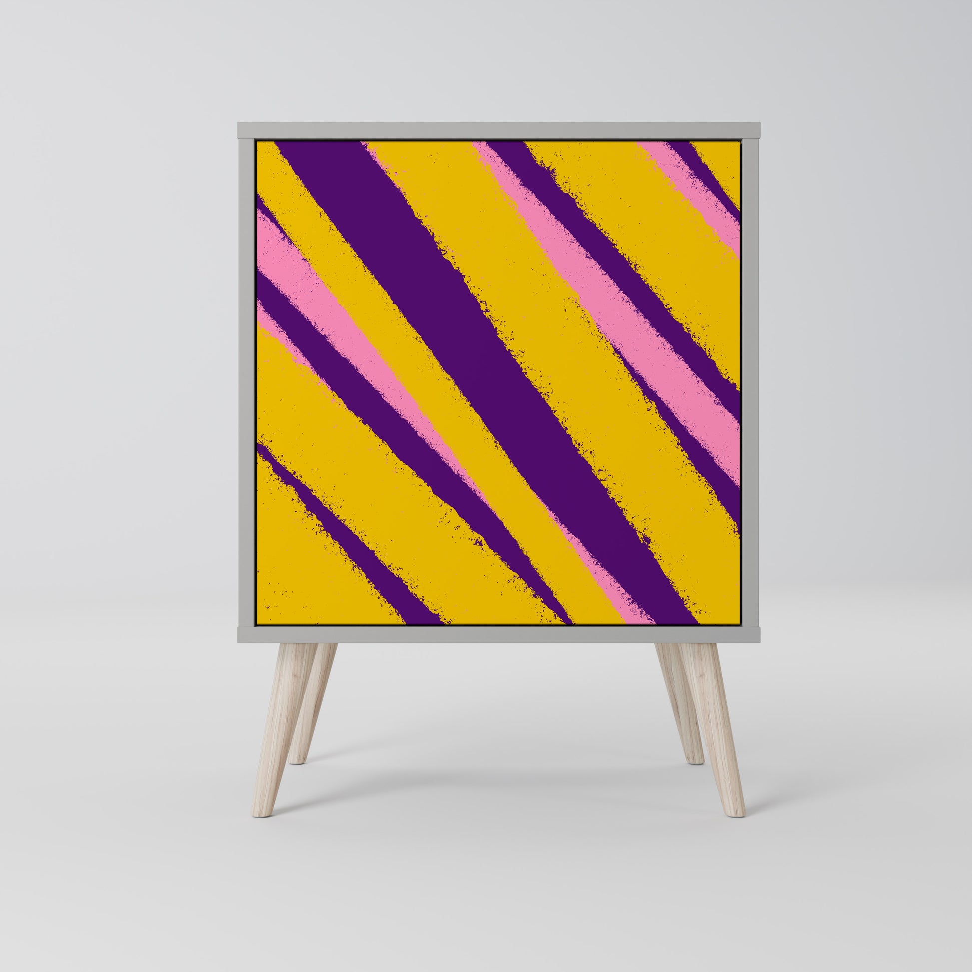 This compact yet remarkably elegant piece of furniture impresses with its minimalist design, perfectly fitting into both modern and classic interiors. The subdued grey color of the body gives the furniture a subtle yet distinctive character, while the fronts with a unique print add an artistic touch.