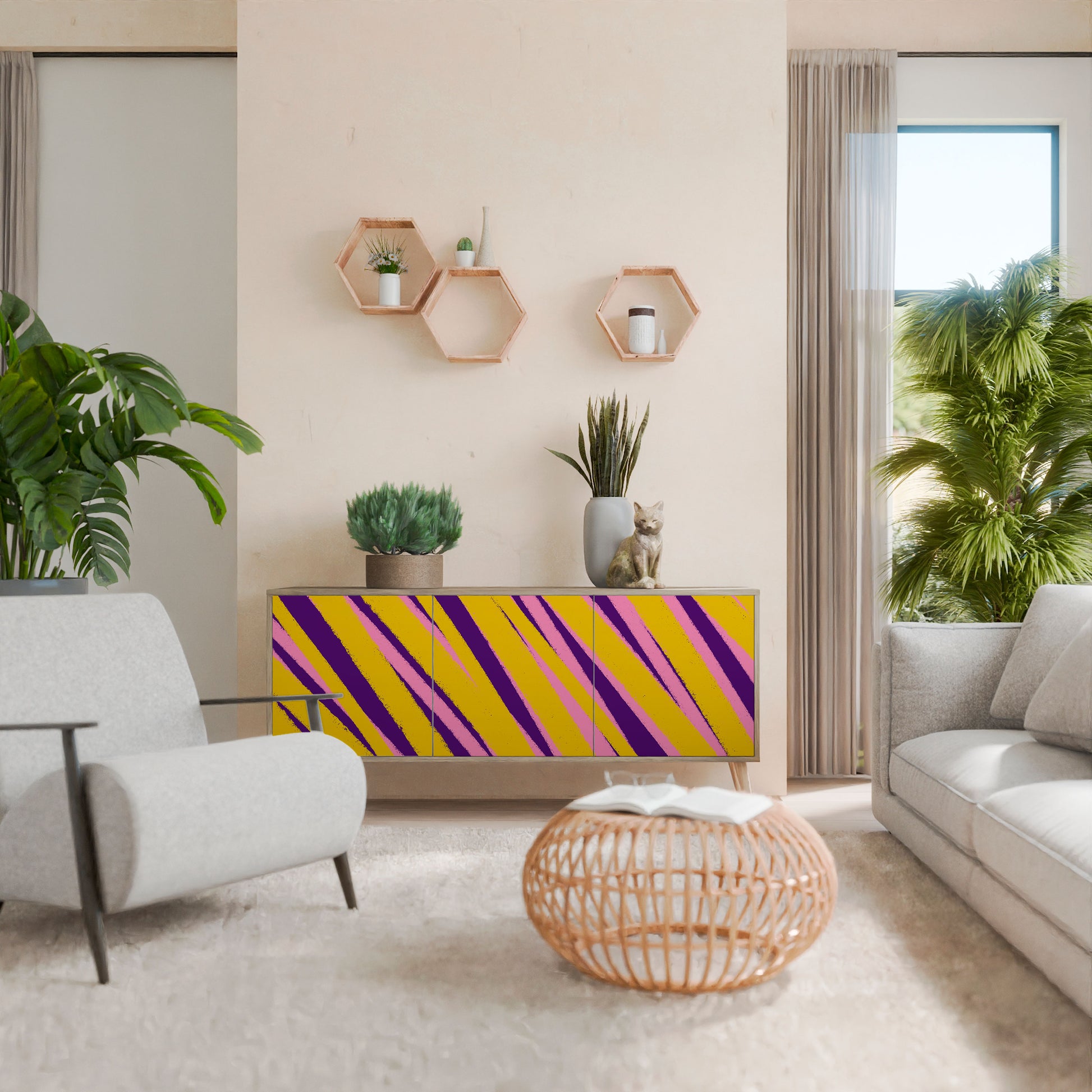 Discover the elegance and natural beauty of wood with our 3-door sideboard in oak finish. This stylish piece combines the sturdiness of a wooden body with the aesthetic detail of printed front doors, creating a cohesive and attractive design. Perfect for both the living room and bedroom, this sideboard adds a touch of class and functionality to any interior.