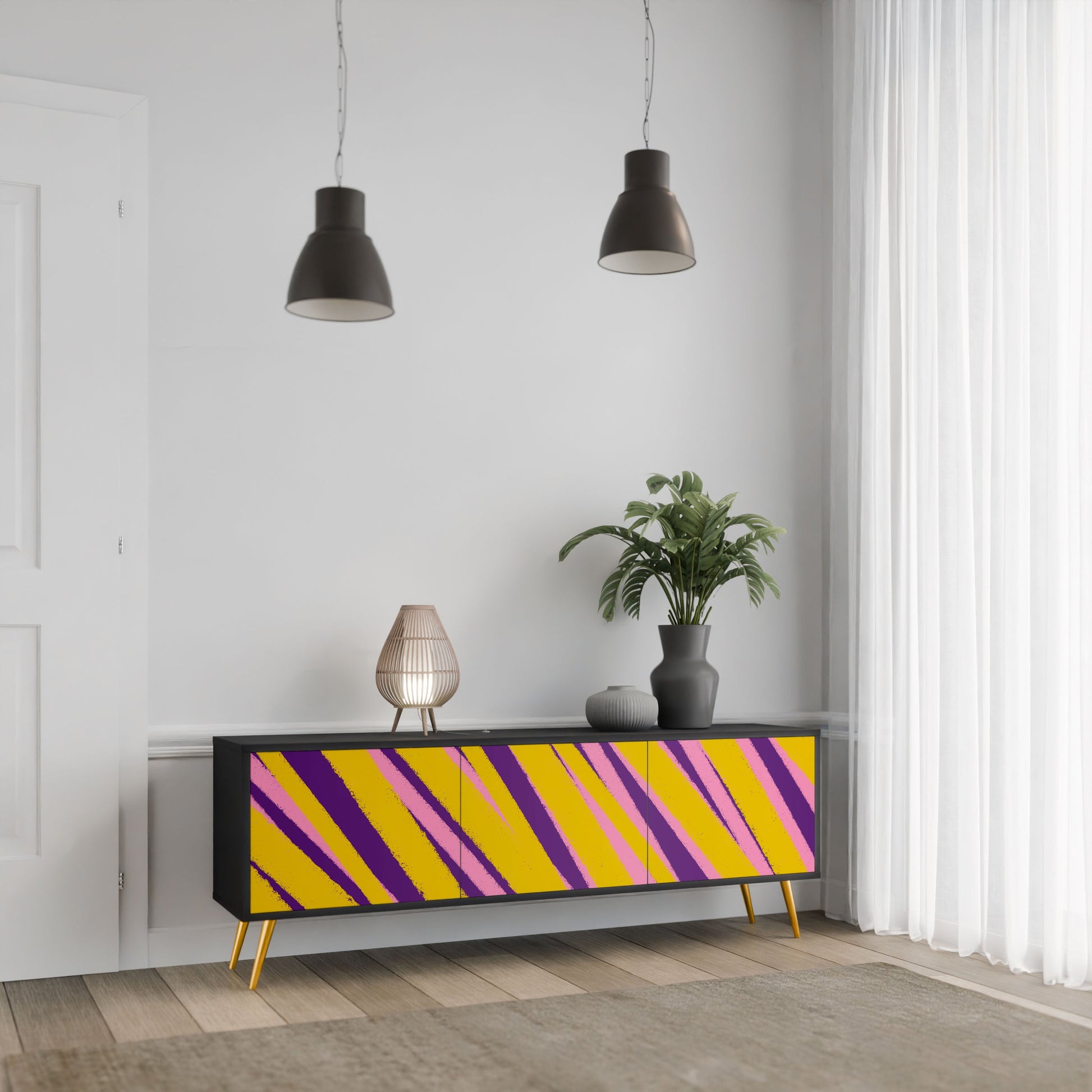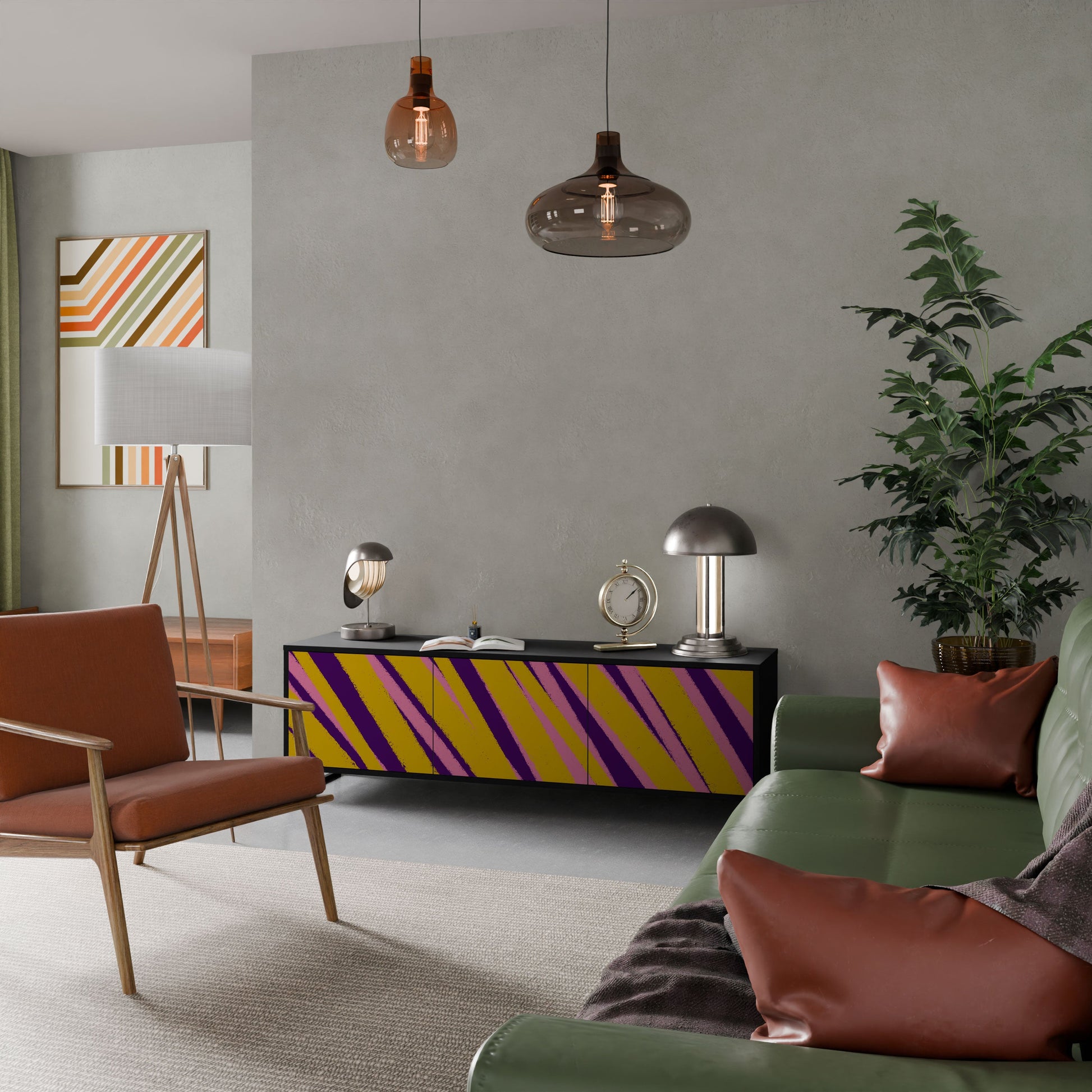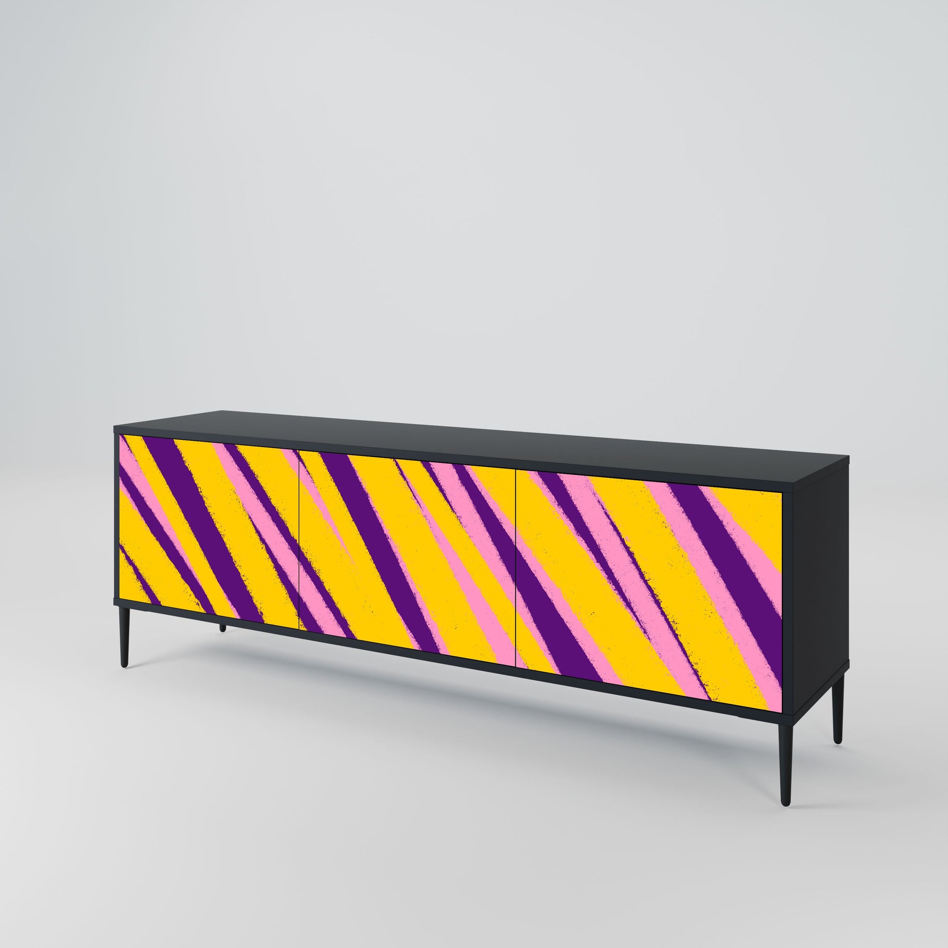 The black body of the stand creates a bold, modern accent that pairs beautifully with industrial and minimalist arrangements. The fronts with a designer print add character and uniqueness, making this piece not only practical but also a standout decorative element.