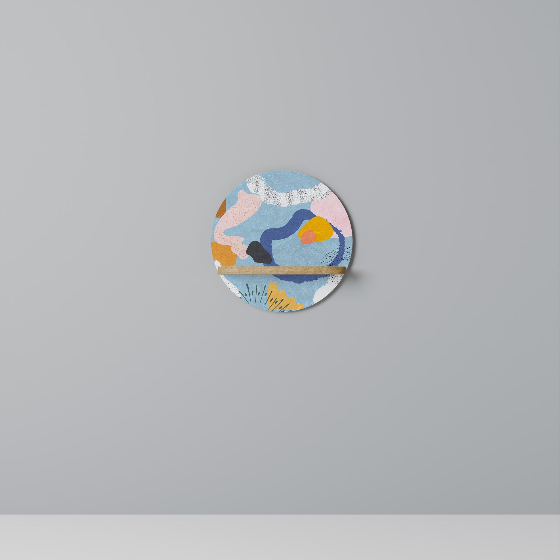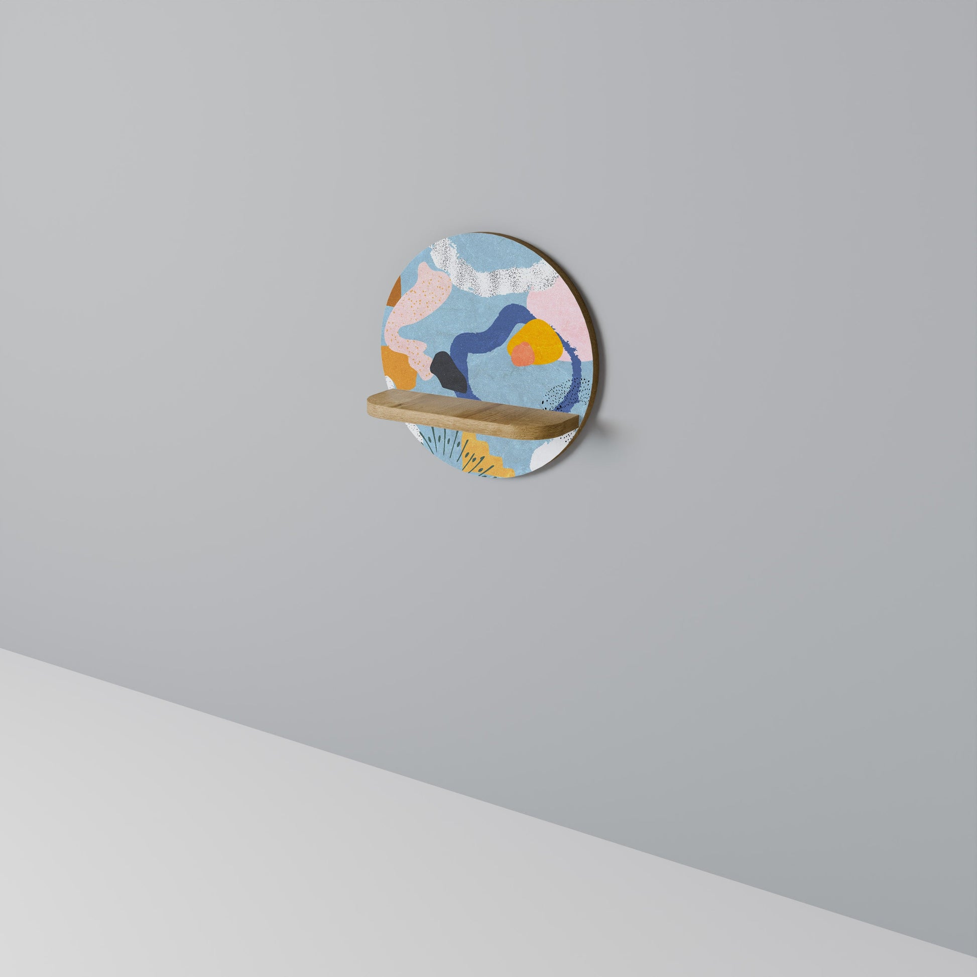 DREAMY SWIRLS Round Art Shelf In Oak Effect