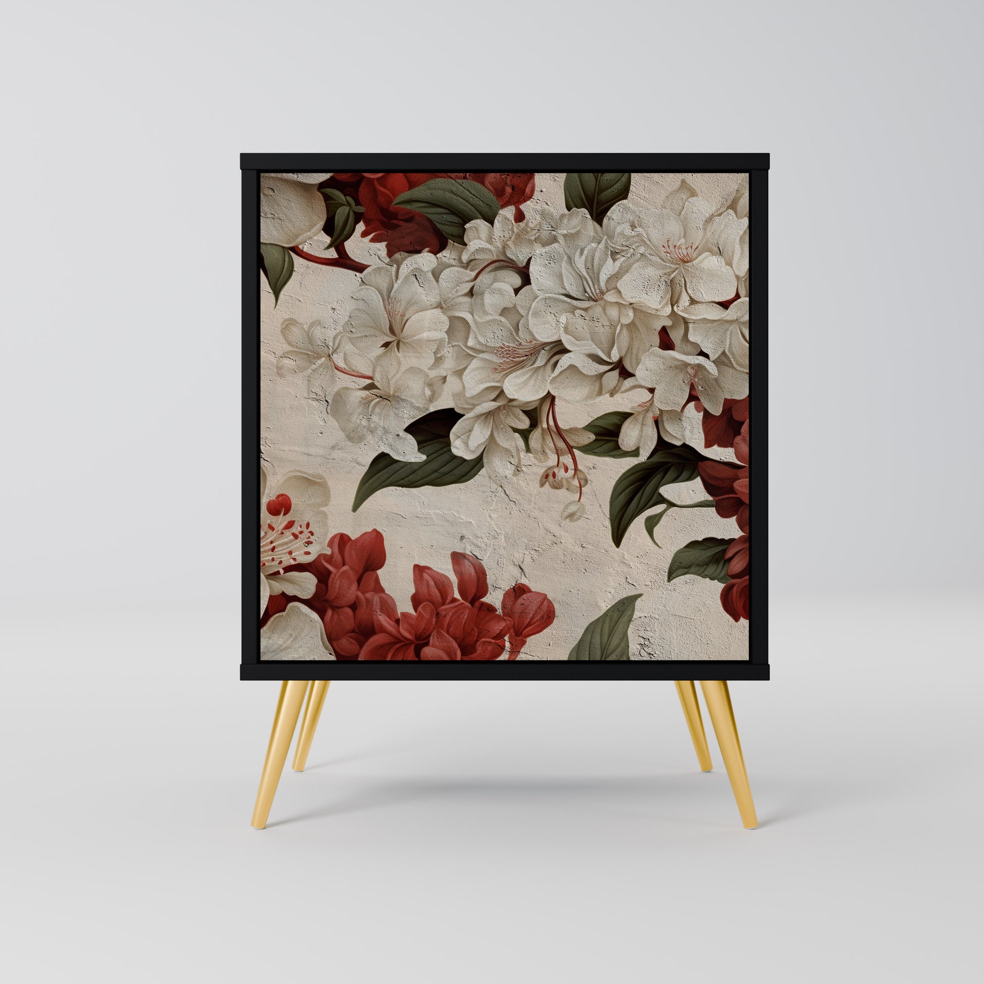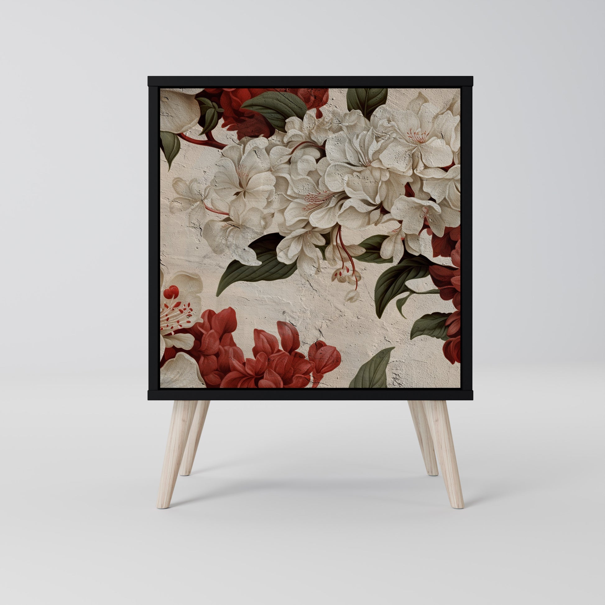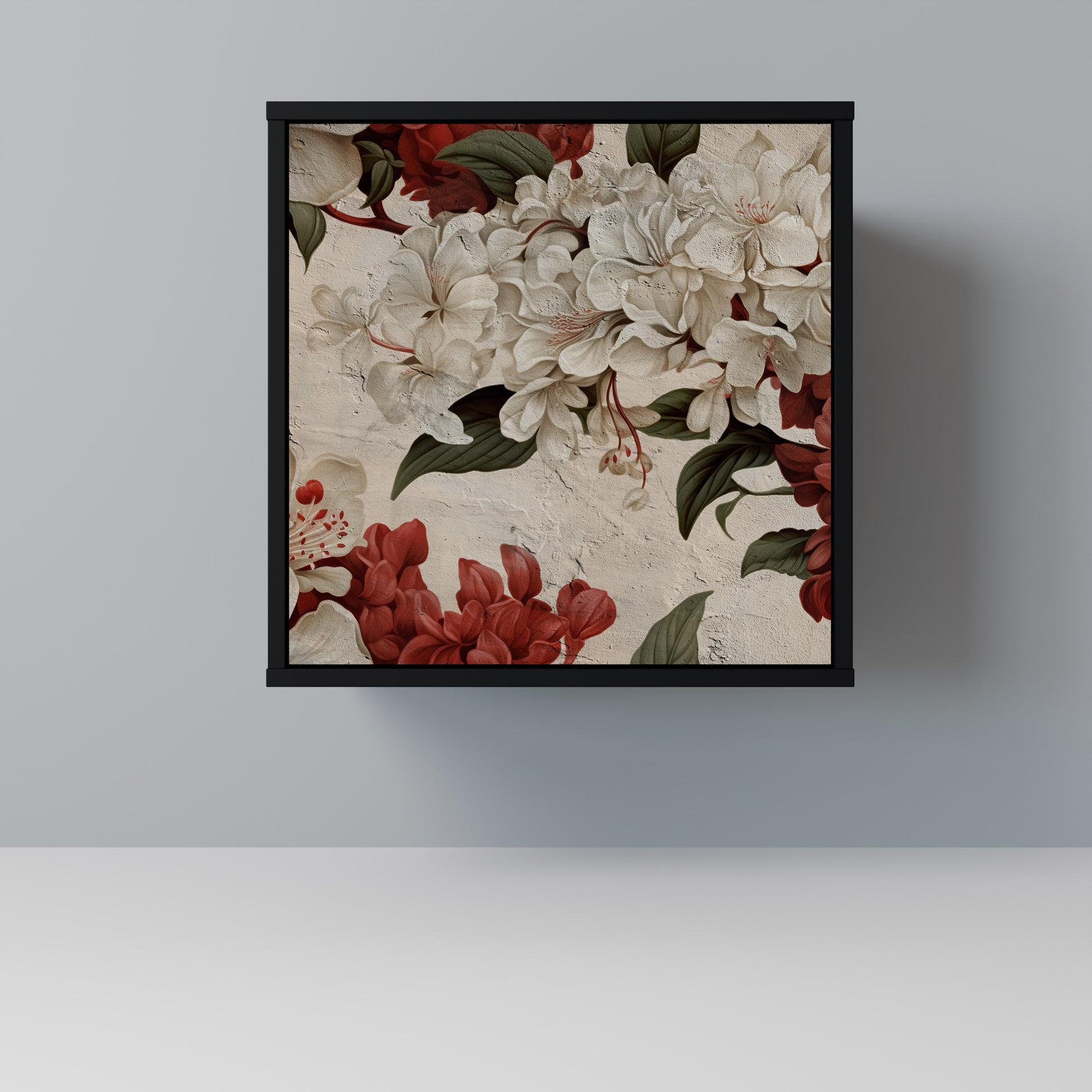 This compact yet remarkably elegant piece of furniture impresses with its minimalist design, perfectly fitting into both modern and classic interiors. The black body emphasizes the furniture’s bold character, while the fronts with a unique print add an artistic touch.