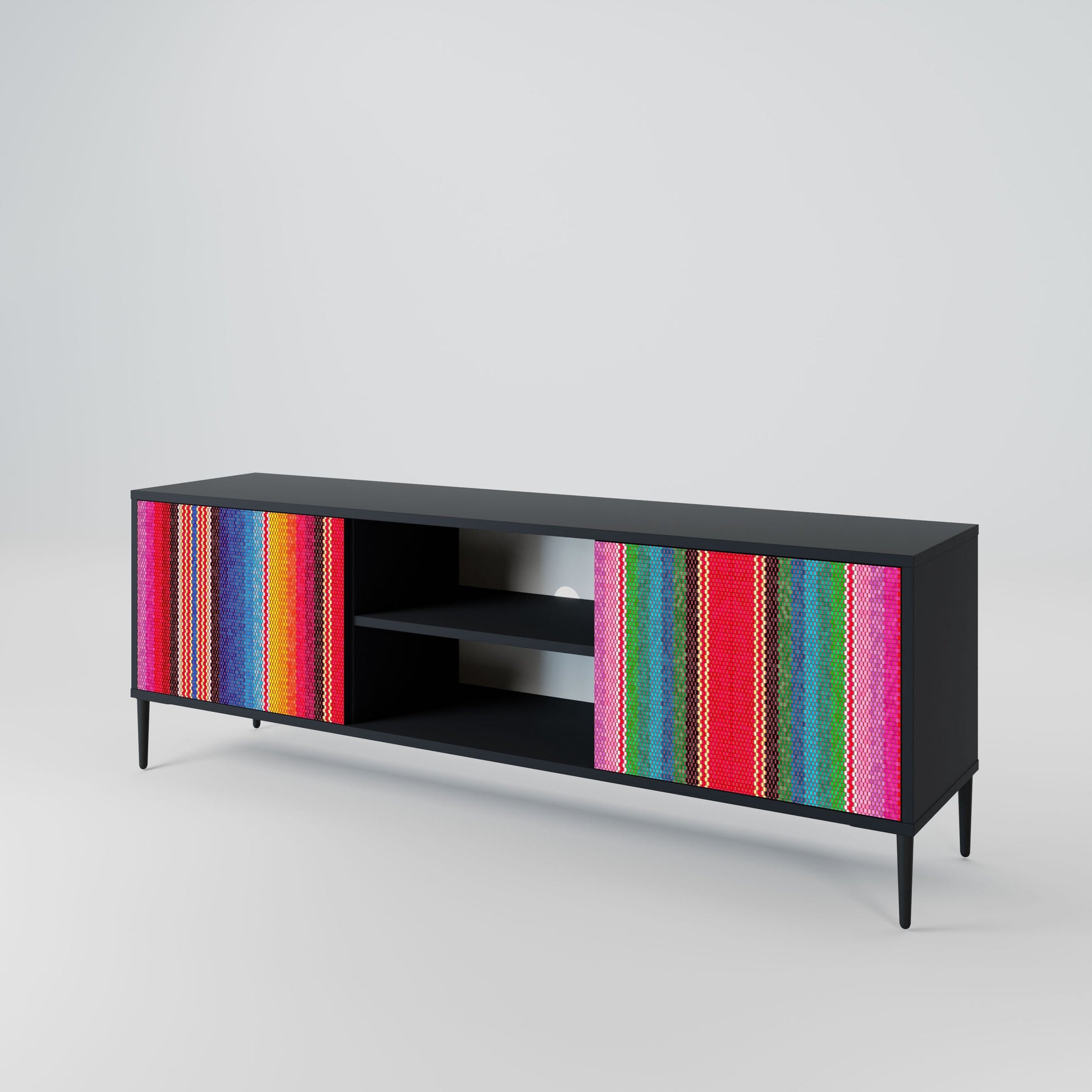 The black body gives the TV stand an elegant, modern look, while the fronts with an exceptional print draw attention, making it the focal point of any room. The spacious interior provides room for electronic devices, cables, remotes, and other accessories, helping you maintain order and organization.