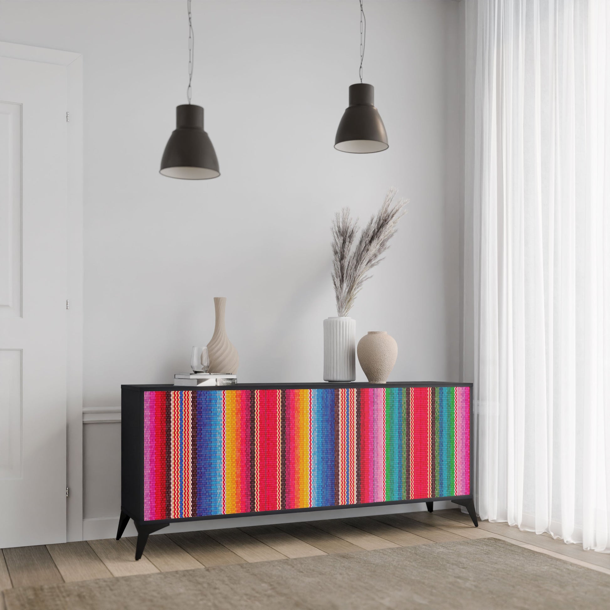 ETHNIC MEXICAN 3-Door Sideboard in Black Finish