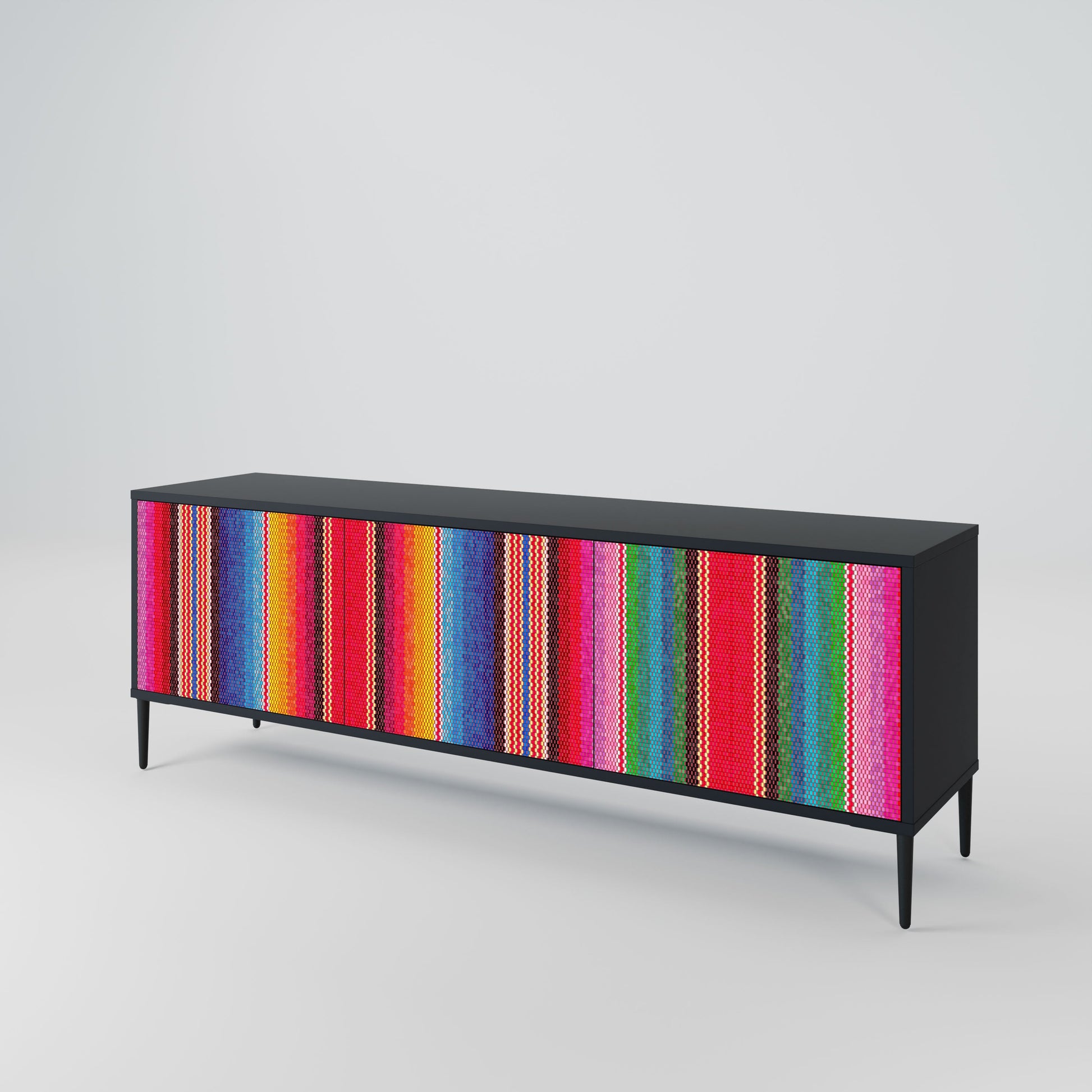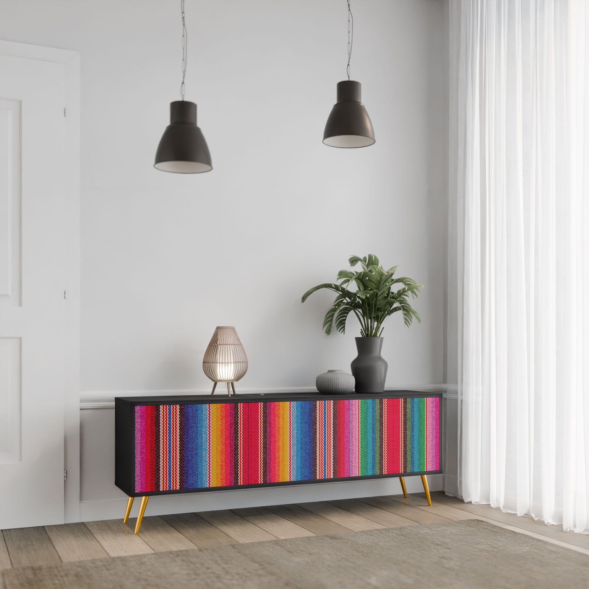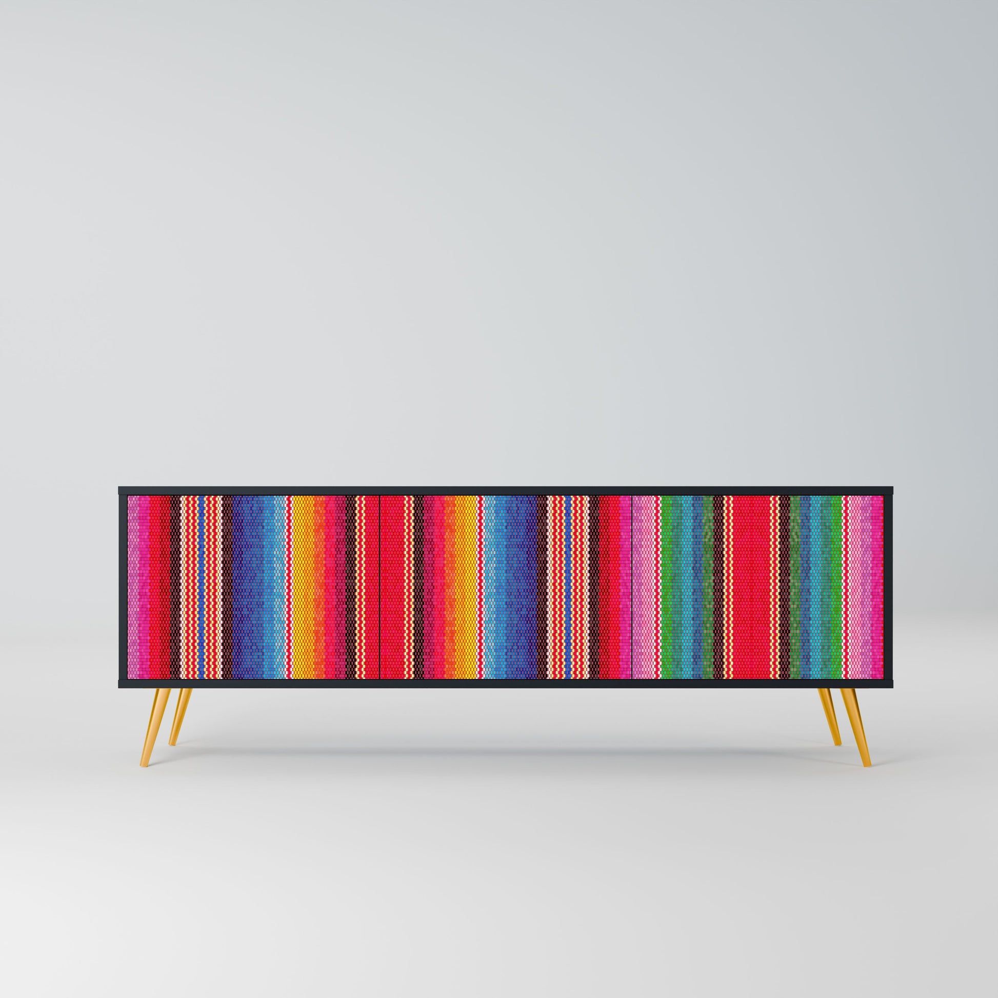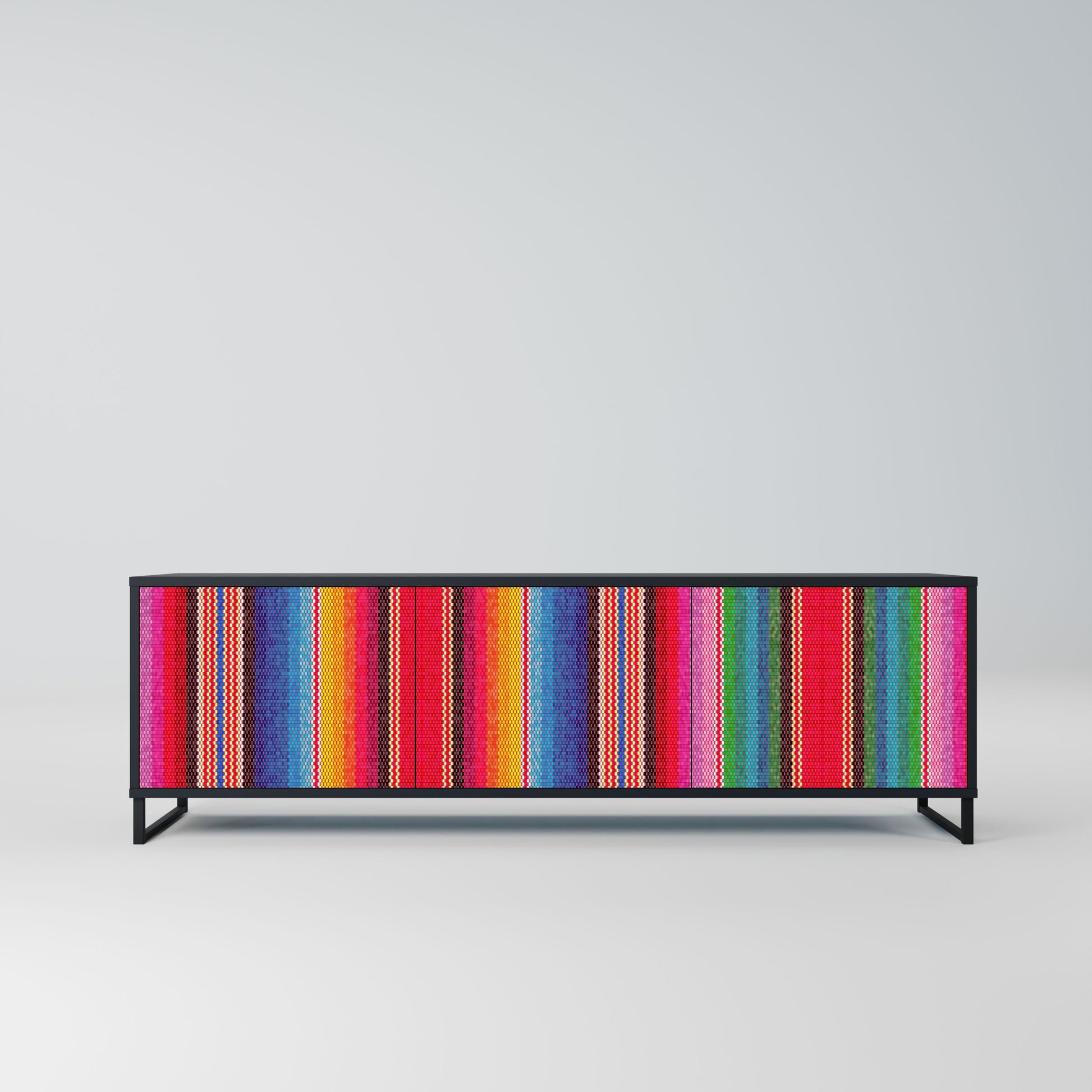 ETHNIC MEXICAN 3-Door TV Stand in Black Finish