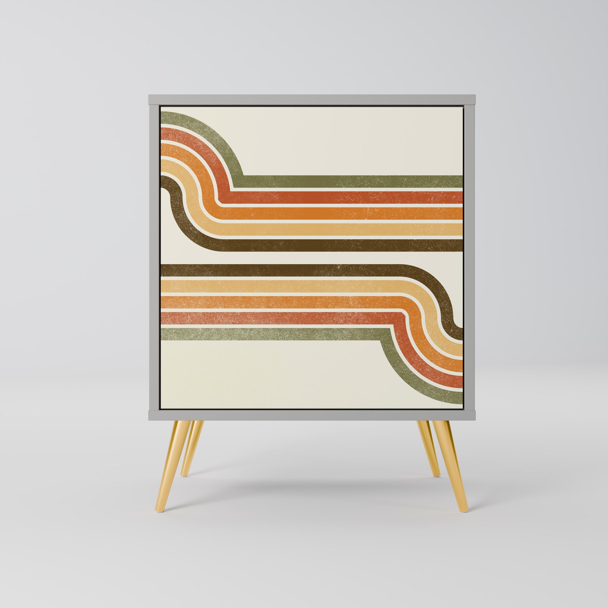 This compact yet remarkably elegant piece of furniture impresses with its minimalist design, perfectly fitting into both modern and classic interiors. The subdued grey color of the body gives the furniture a subtle yet distinctive character, while the fronts with a unique print add an artistic touch.