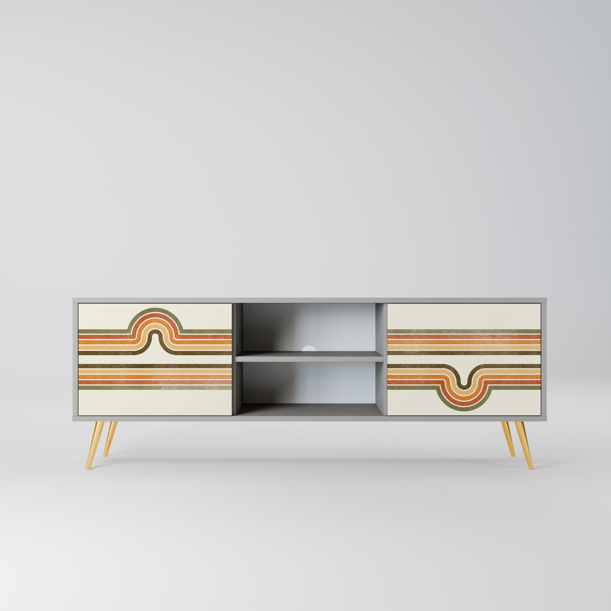 The grey body lends the TV stand a contemporary, refined look, while the fronts with an exceptional print capture attention, becoming the focal point of any room. The spacious interior provides room for electronic devices, cables, remotes, and other accessories, helping you maintain order and organization.