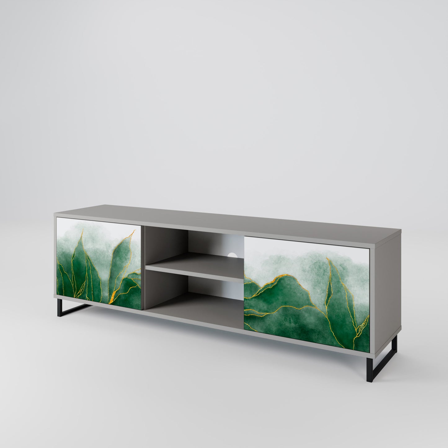 The grey body lends the TV stand a contemporary, refined look, while the fronts with an exceptional print capture attention, becoming the focal point of any room. The spacious interior provides room for electronic devices, cables, remotes, and other accessories, helping you maintain order and organization.