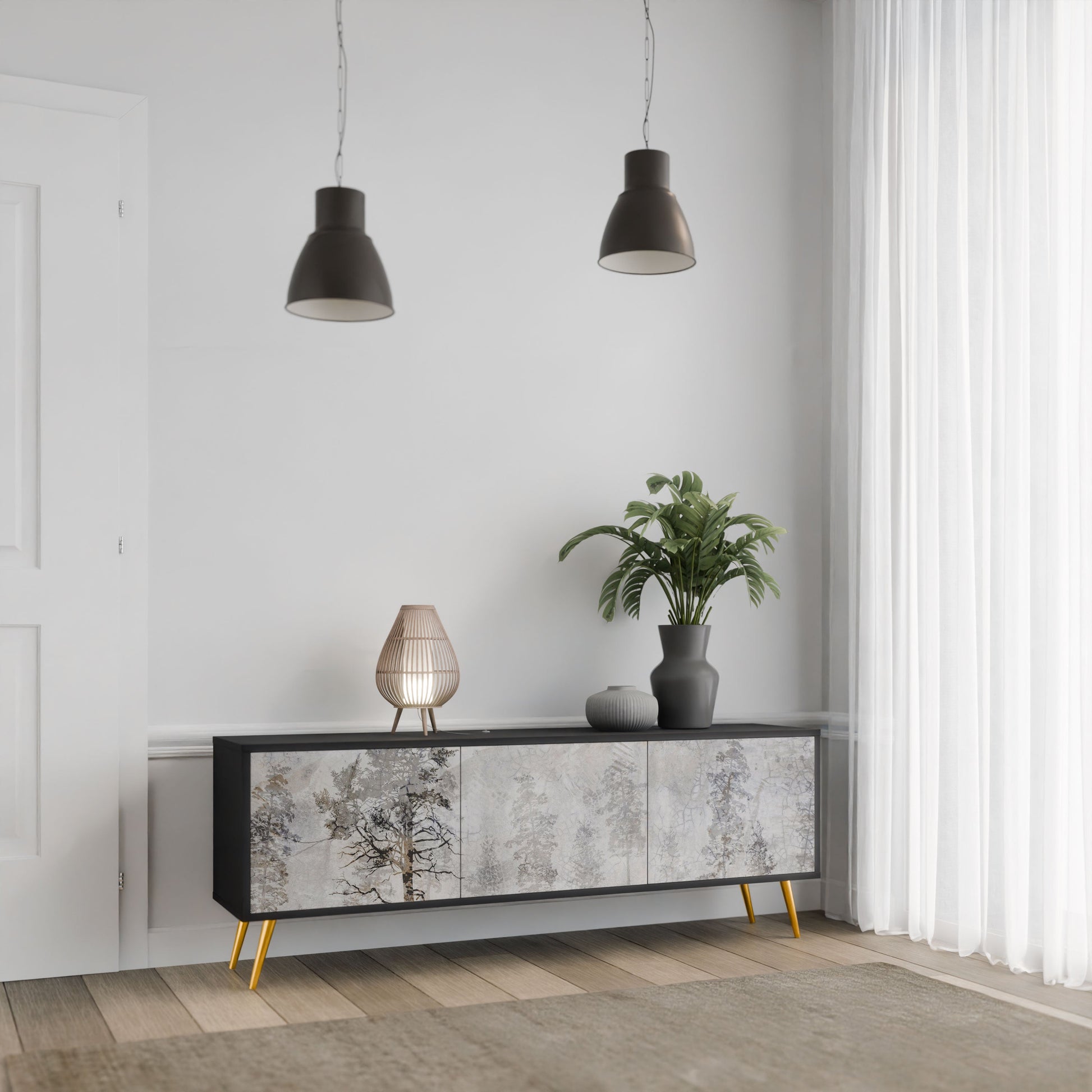 FADE IN THE TREES 3-Door TV Stand in Black Finish