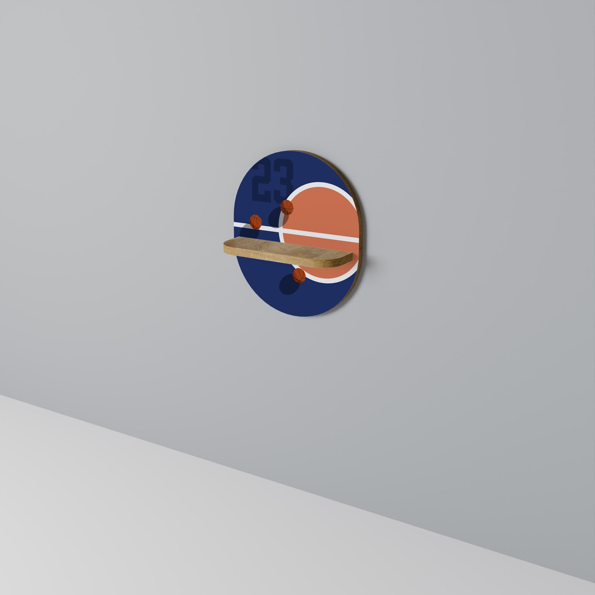 FAMOUS NUMBER 23 Oval Art Shelf In Oak Effect