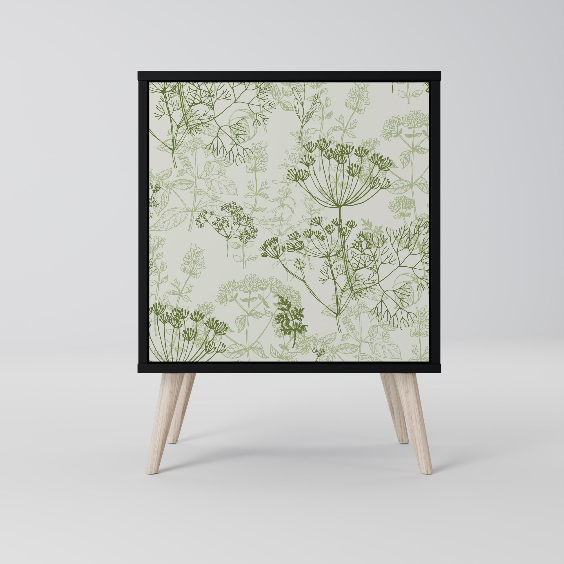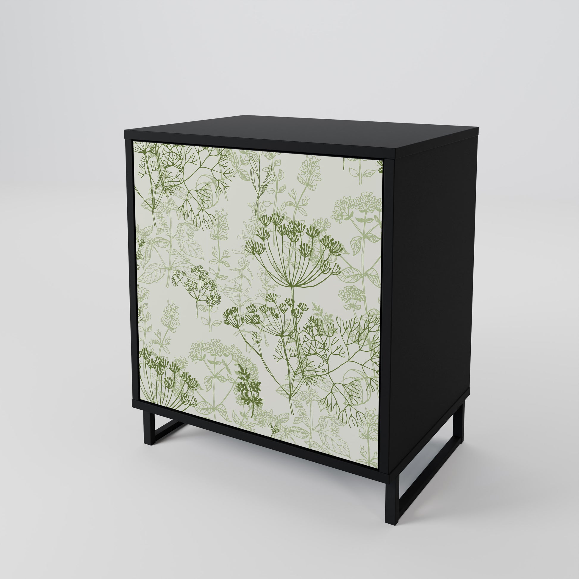This compact yet remarkably elegant piece of furniture impresses with its minimalist design, perfectly fitting into both modern and classic interiors. The black body emphasizes the furniture’s bold character, while the fronts with a unique print add an artistic touch.