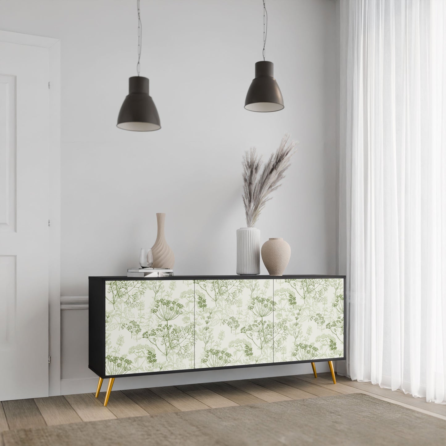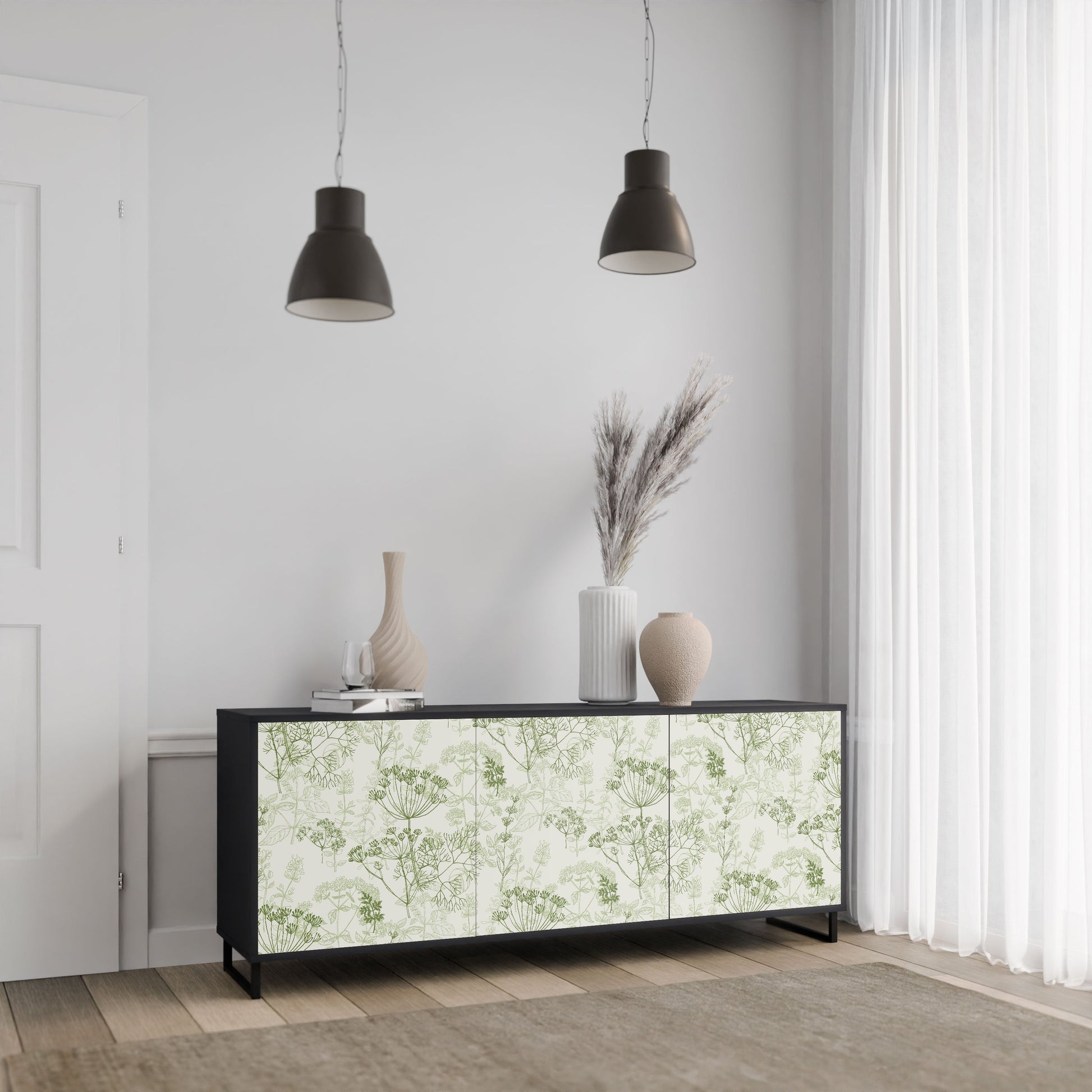 Elegance and functionality in a single piece of furniture – our 3-Door Sideboard with a black body is the perfect solution for lovers of stylish, modern interiors. The black body emphasizes the bold character of the furniture, while the fronts with a unique print add an artistic touch. It fits perfectly in the living room, bedroom, or office, complementing both modern and industrial arrangements.
