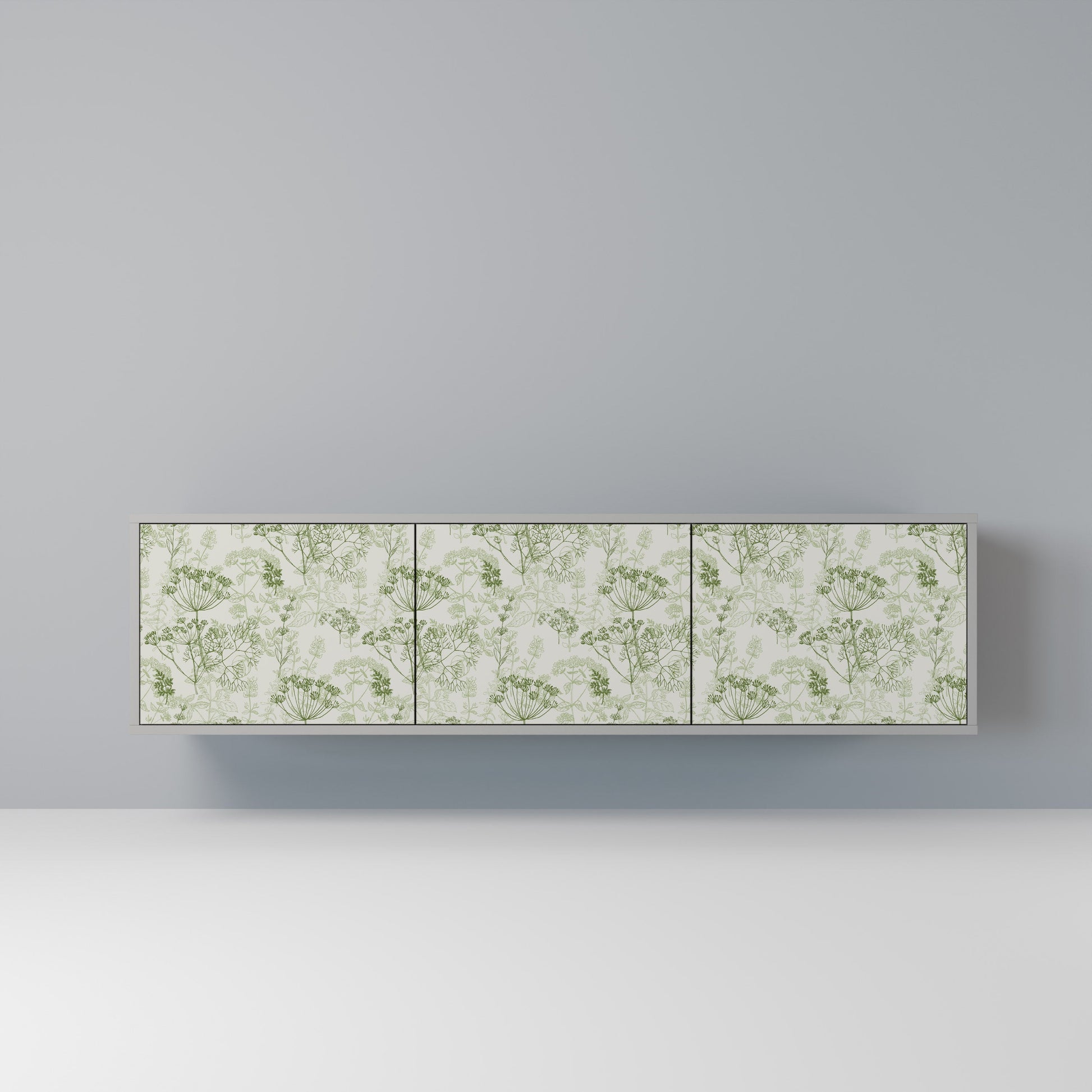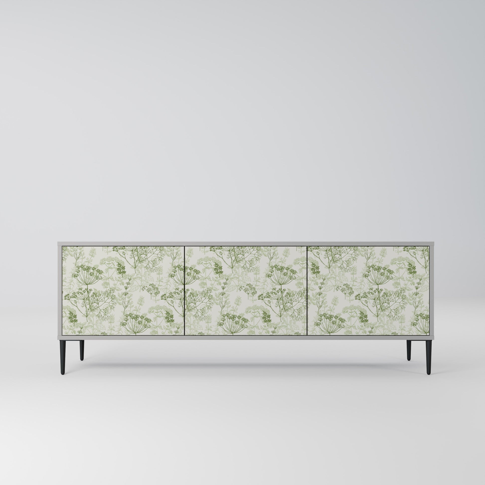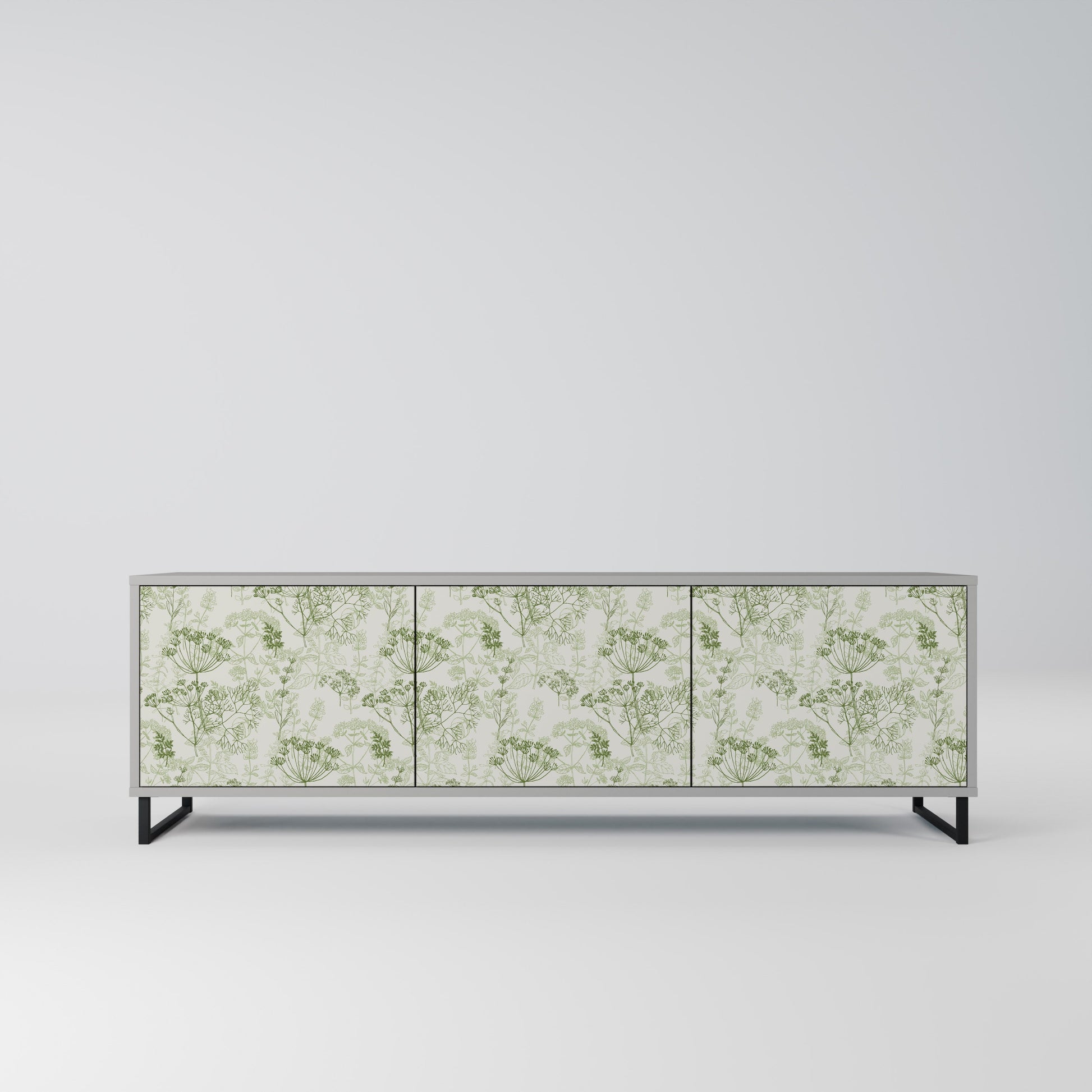 The grey body of the stand creates a refined, modern accent that pairs beautifully with industrial and minimalist arrangements. The fronts with a designer print add character and uniqueness, making this piece not only practical but also a standout decorative element.