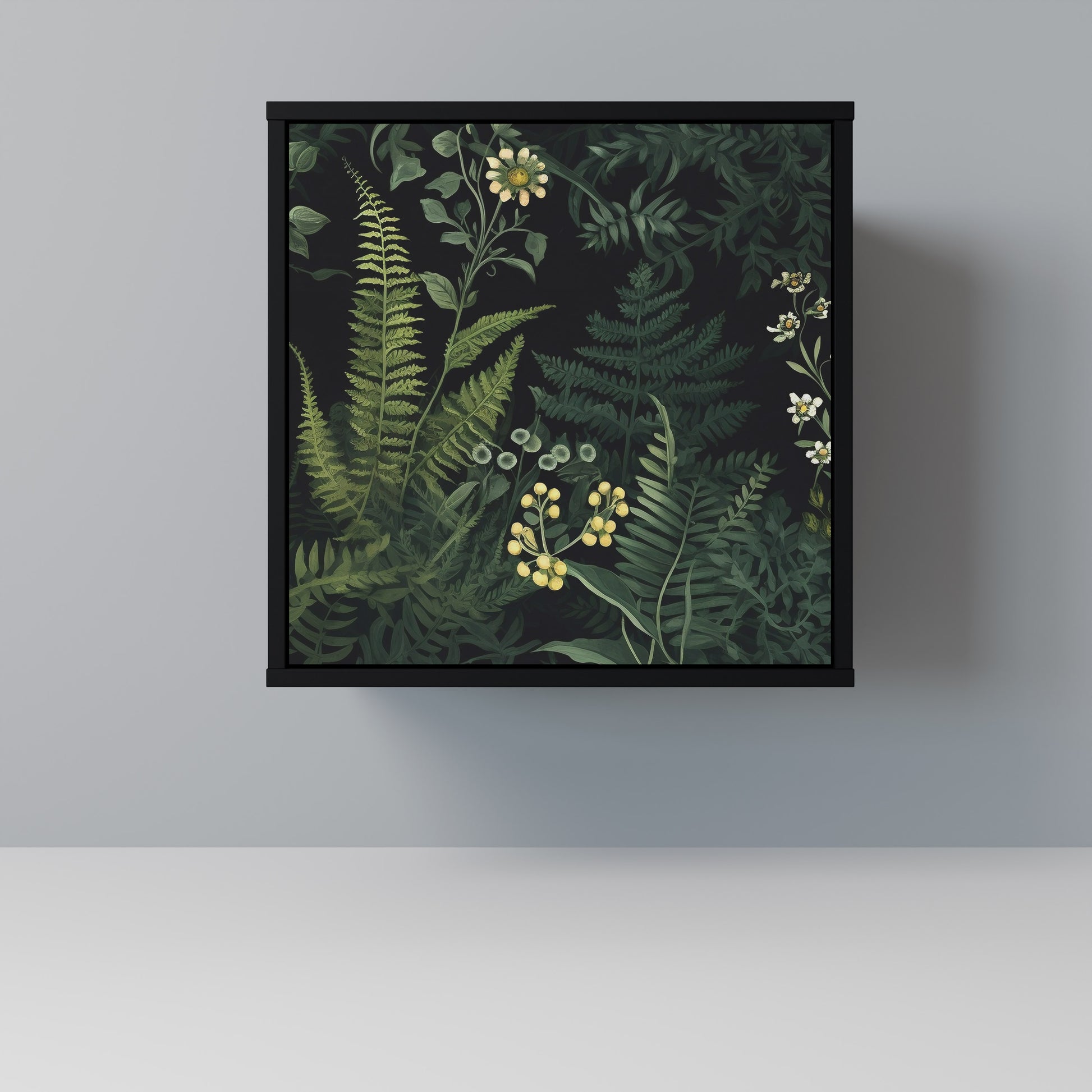 FERN FLOWERS 1-Door Sideboard in Black Finish