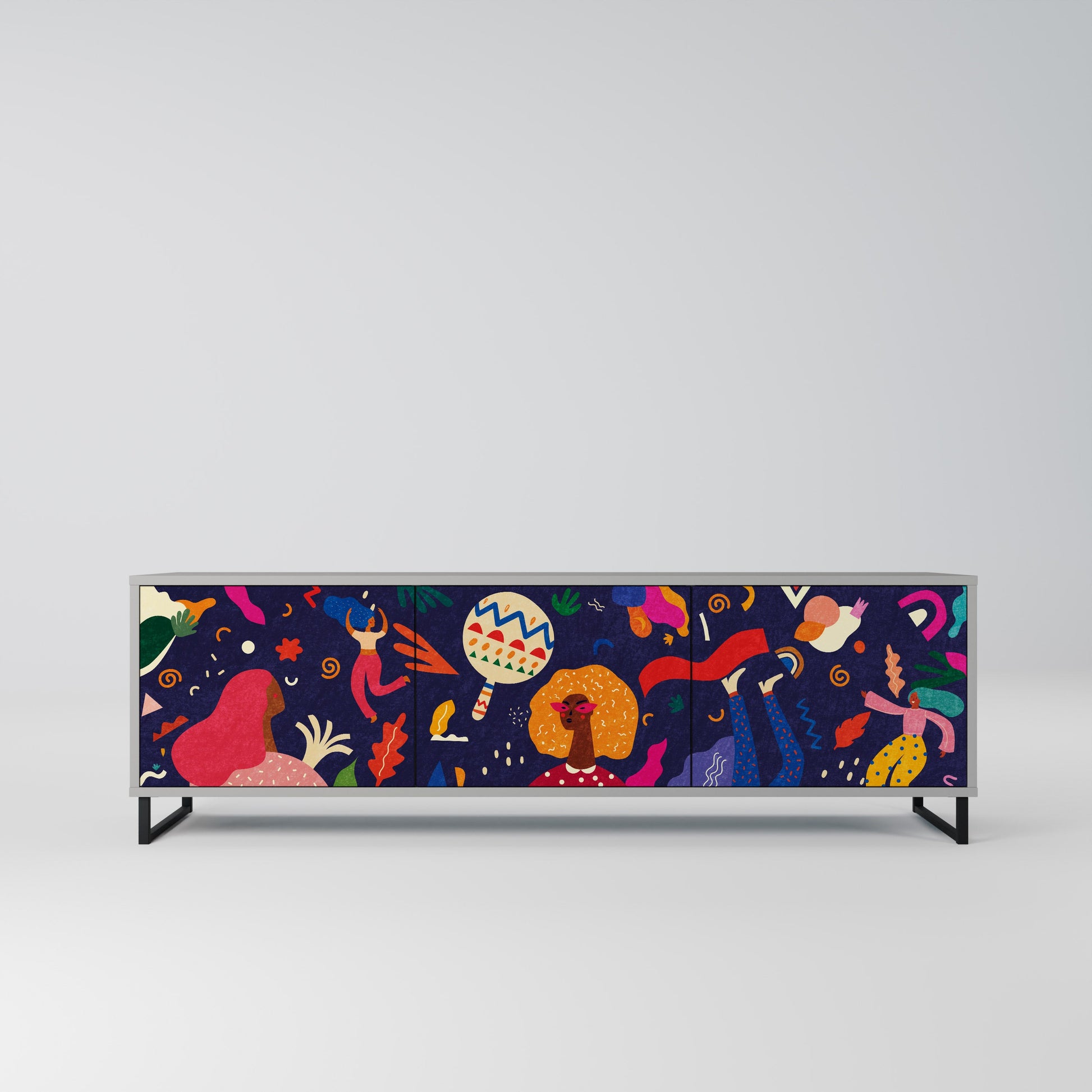 The grey body of the stand creates a refined, modern accent that pairs beautifully with industrial and minimalist arrangements. The fronts with a designer print add character and uniqueness, making this piece not only practical but also a standout decorative element.