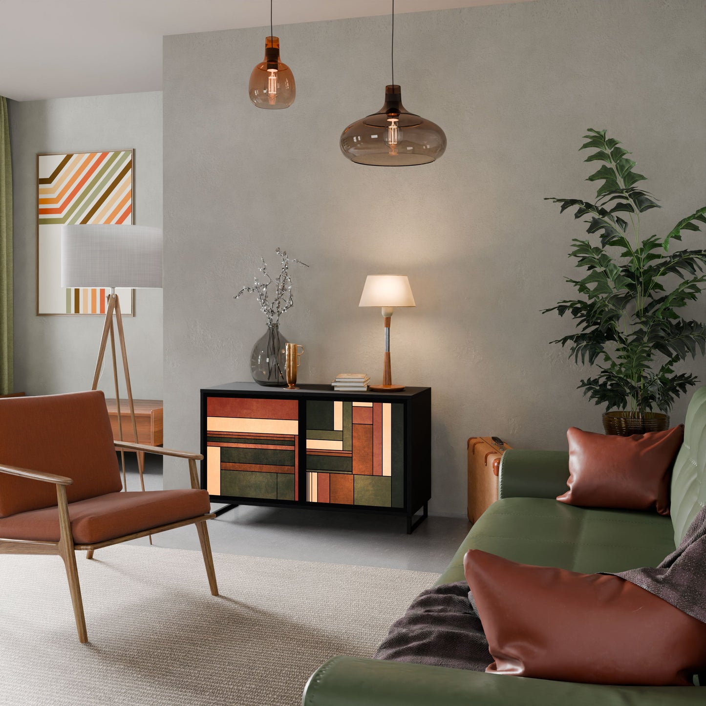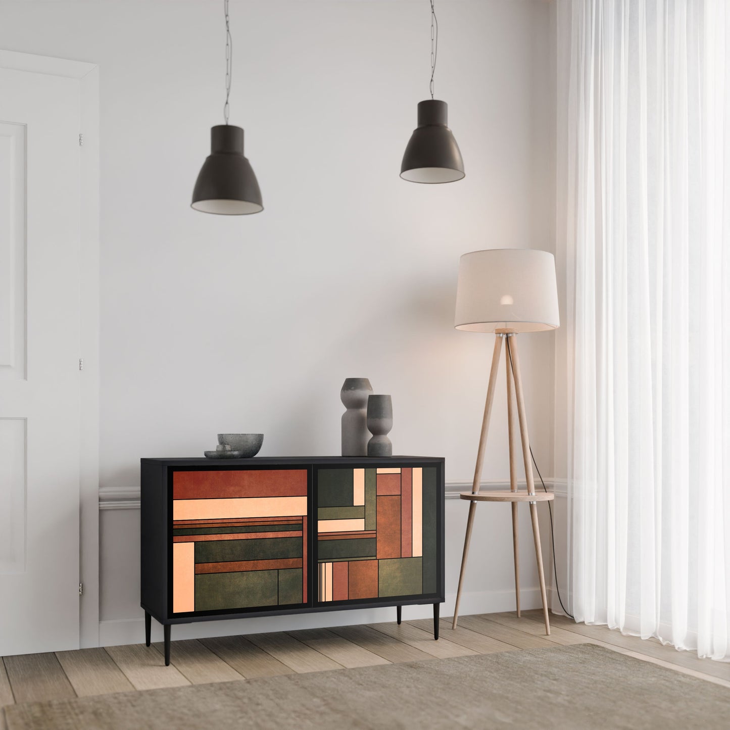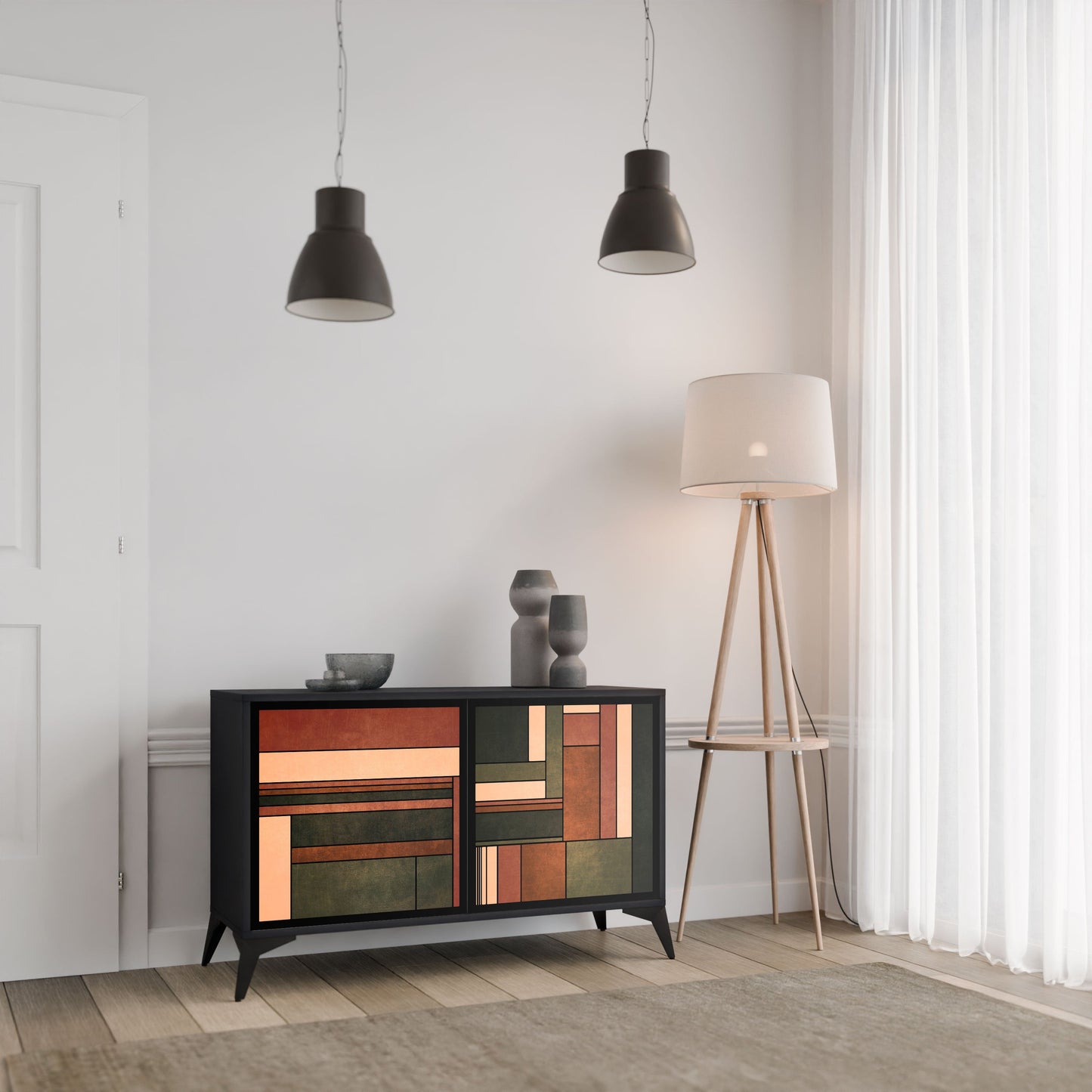 Elegance and functionality in a single piece of furniture – our 2-Door Sideboard with a black body is the perfect solution for lovers of stylish, modern interiors. The black body emphasizes the bold character of the furniture, while the fronts with a unique print add an artistic touch. It fits perfectly in the living room, bedroom, or office, complementing both modern and industrial arrangements.