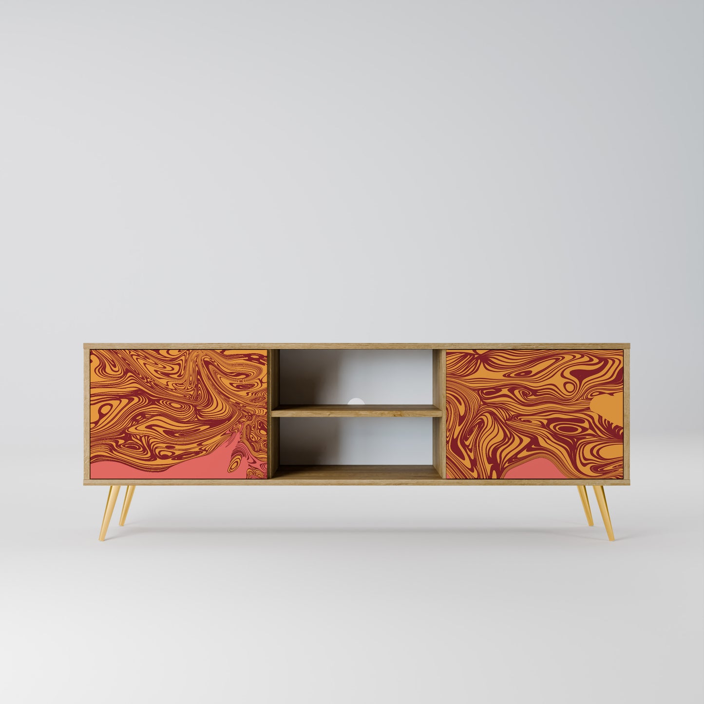 We invite you to discover our 2-door TV stand that combines simplicity with exceptional style. Made from the highest-quality materials, this elegant piece in oak tones, featuring wooden doors with a printed finish, is the perfect addition to any modern living room.