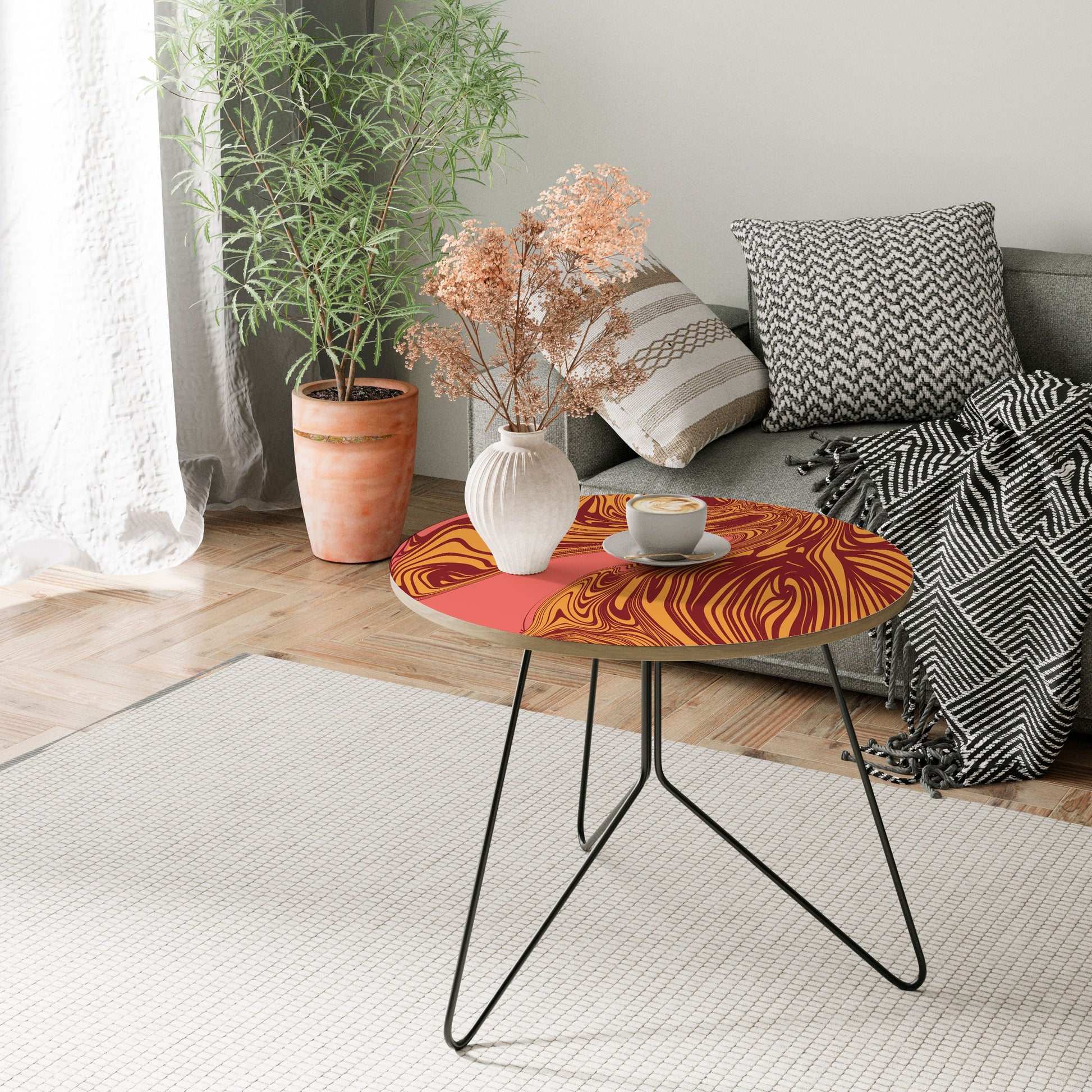 The tabletop features a high-quality printed motif, adding a distinctive artistic accent to your space. Crafted from durable chipboard covered with laminate, it ensures long-lasting use and resistance to daily wear.