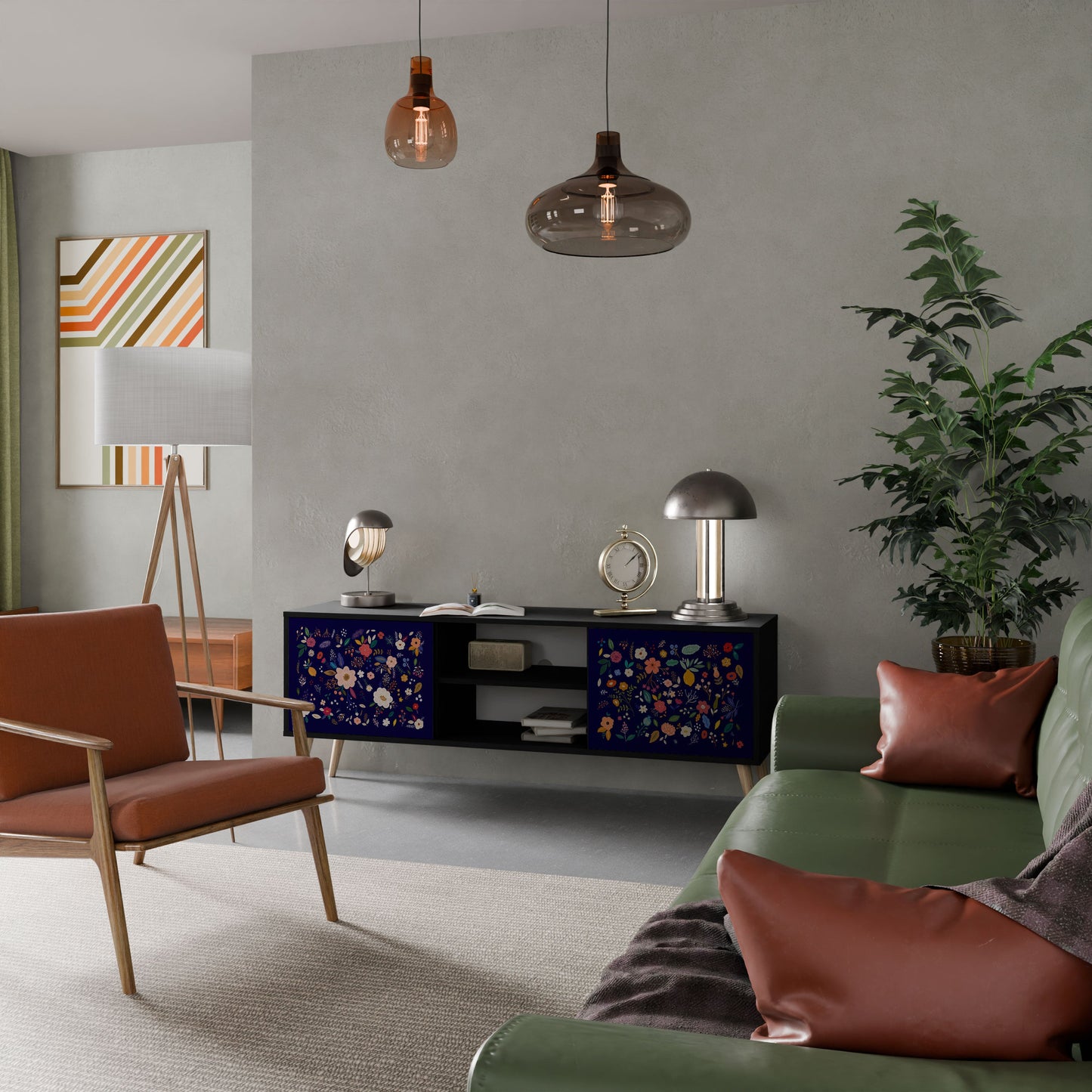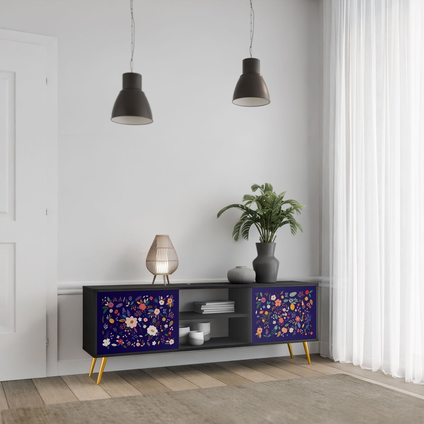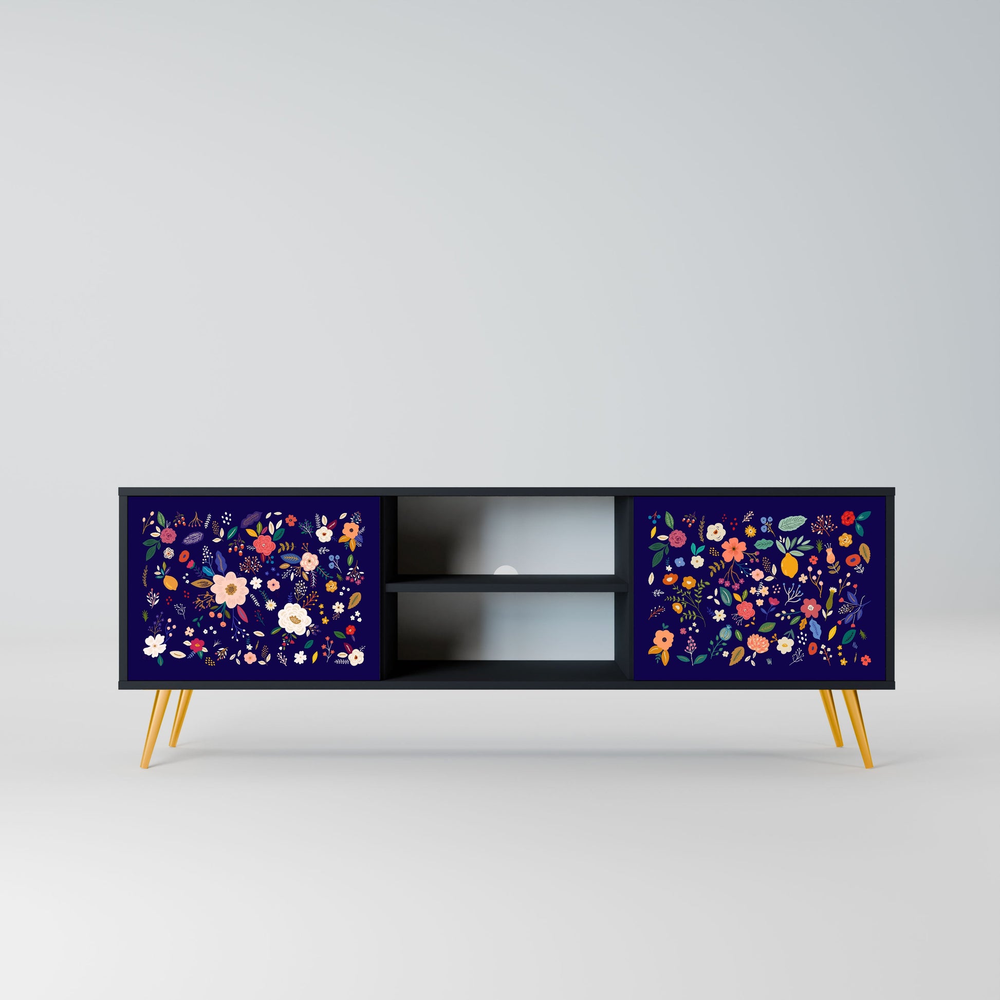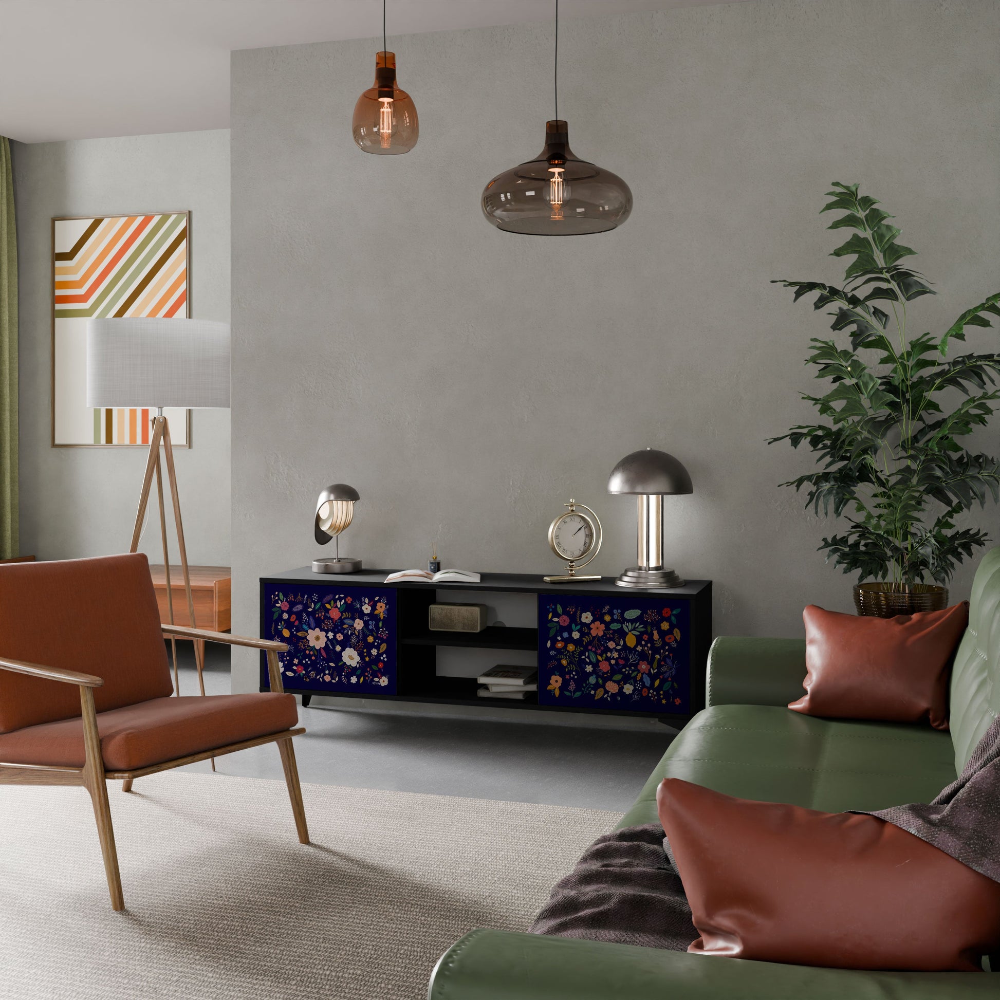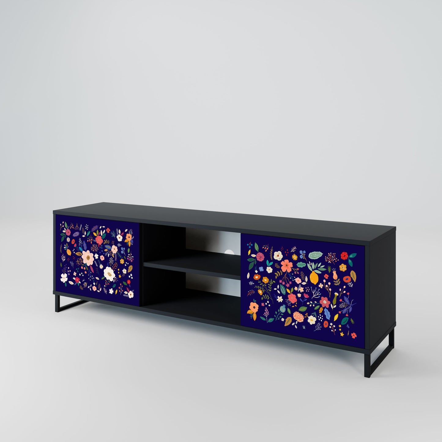 FLORAL COMBINATION 2-Door TV Stand in Black Finish