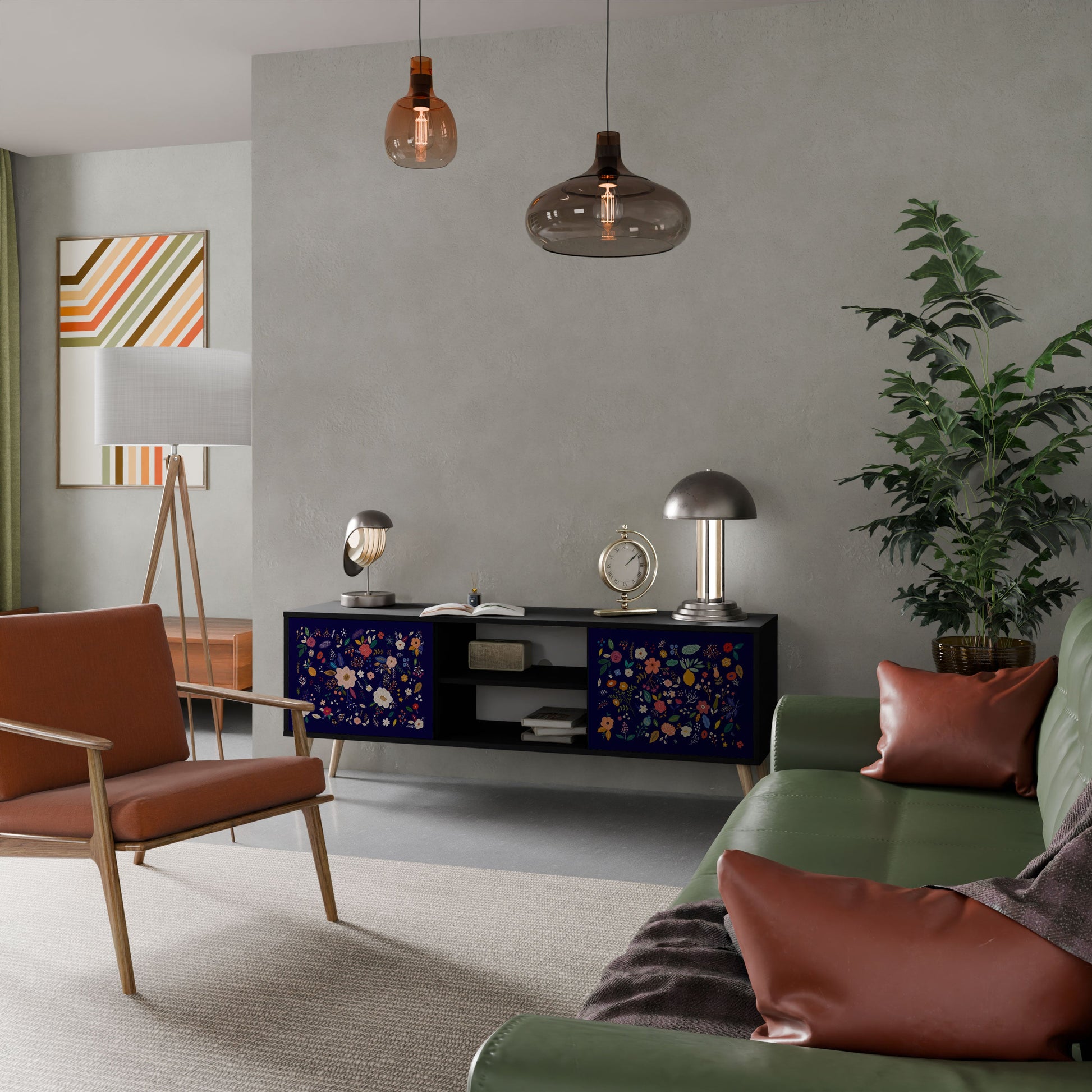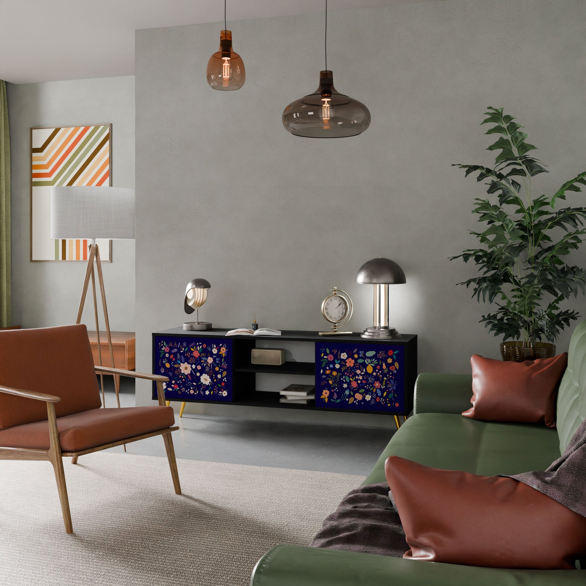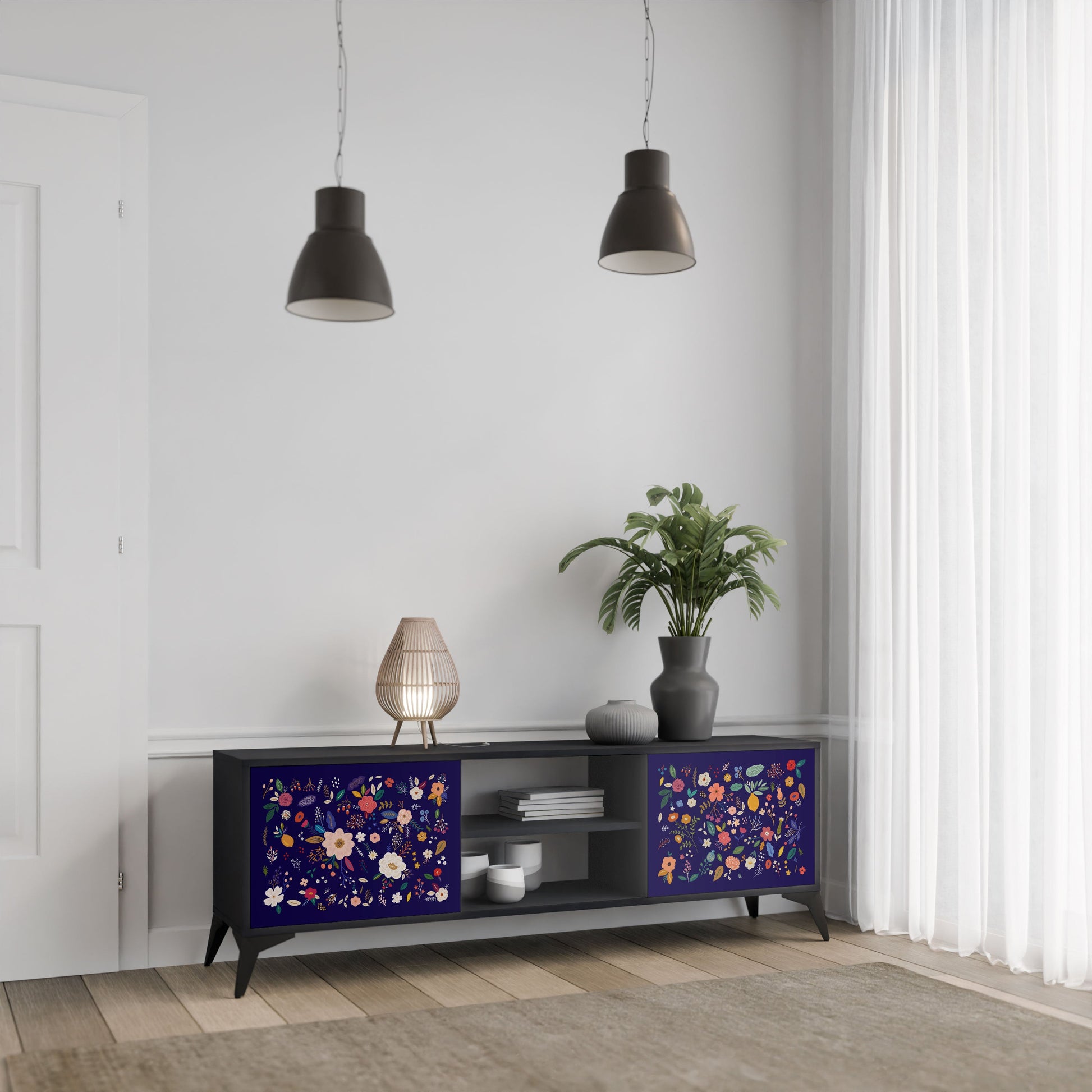 The black body gives the TV stand an elegant, modern look, while the fronts with an exceptional print draw attention, making it the focal point of any room. The spacious interior provides room for electronic devices, cables, remotes, and other accessories, helping you maintain order and organization.