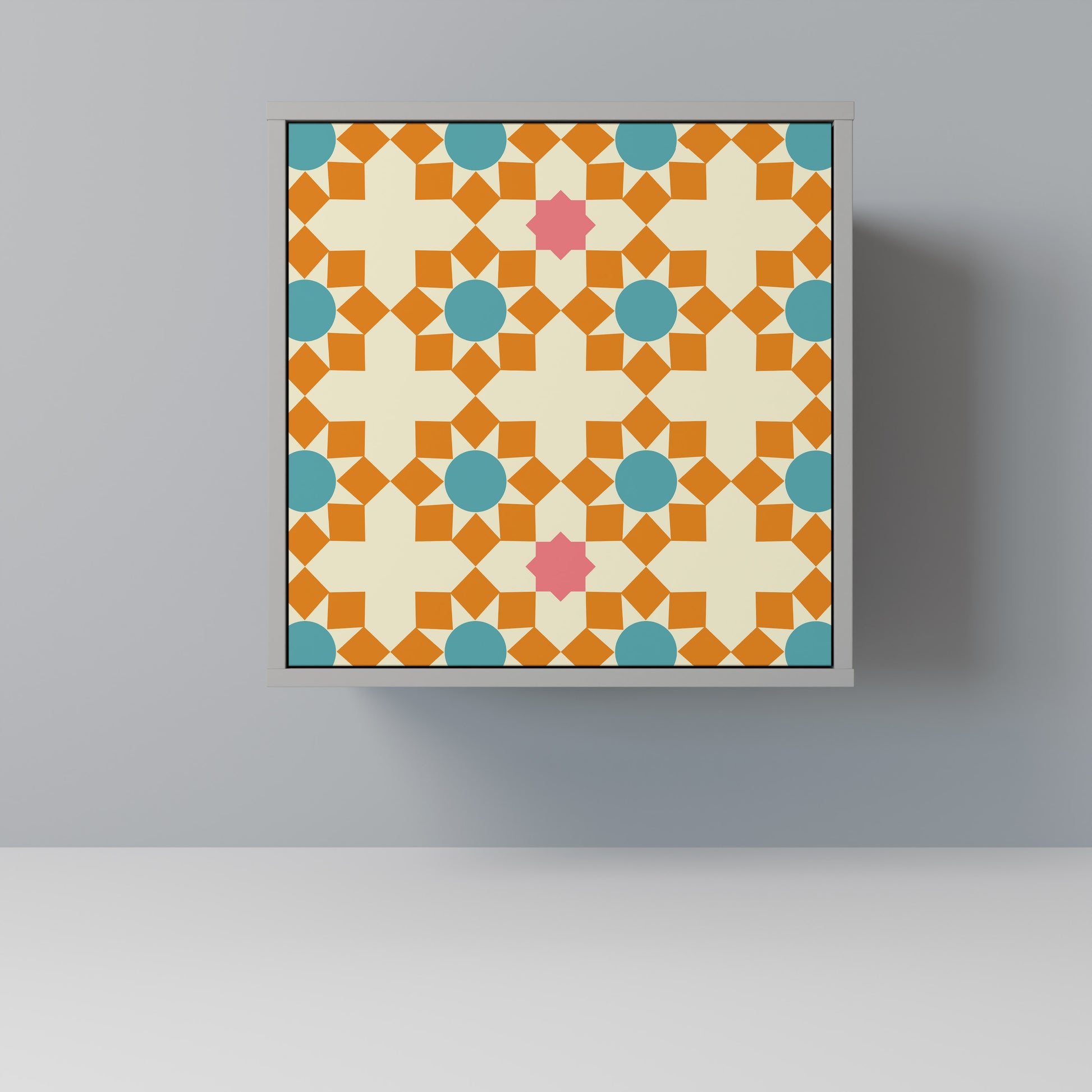 This compact yet remarkably elegant piece of furniture impresses with its minimalist design, perfectly fitting into both modern and classic interiors. The subdued grey color of the body gives the furniture a subtle yet distinctive character, while the fronts with a unique print add an artistic touch.