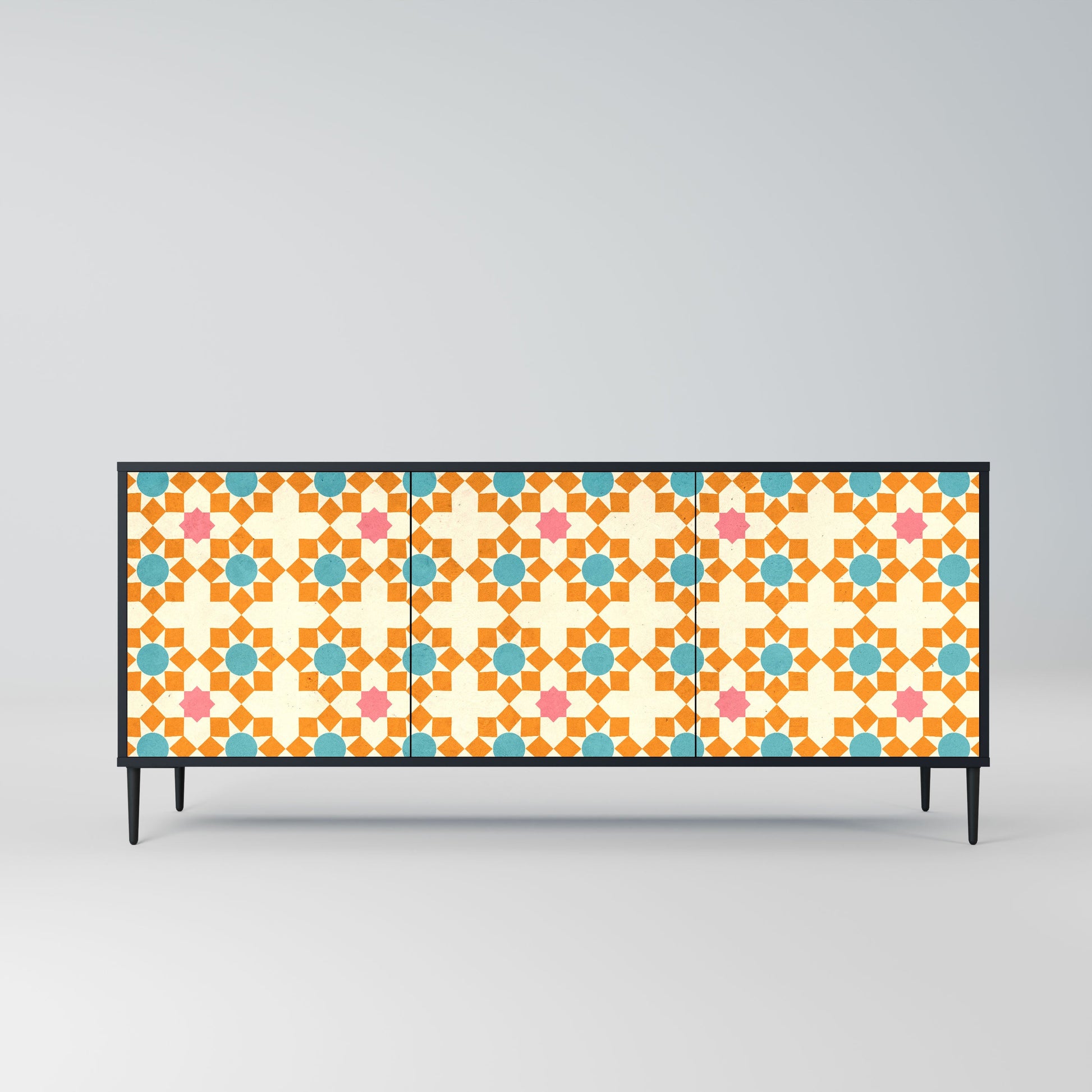 Elegance and functionality in a single piece of furniture – our 3-Door Sideboard with a black body is the perfect solution for lovers of stylish, modern interiors. The black body emphasizes the bold character of the furniture, while the fronts with a unique print add an artistic touch. It fits perfectly in the living room, bedroom, or office, complementing both modern and industrial arrangements.