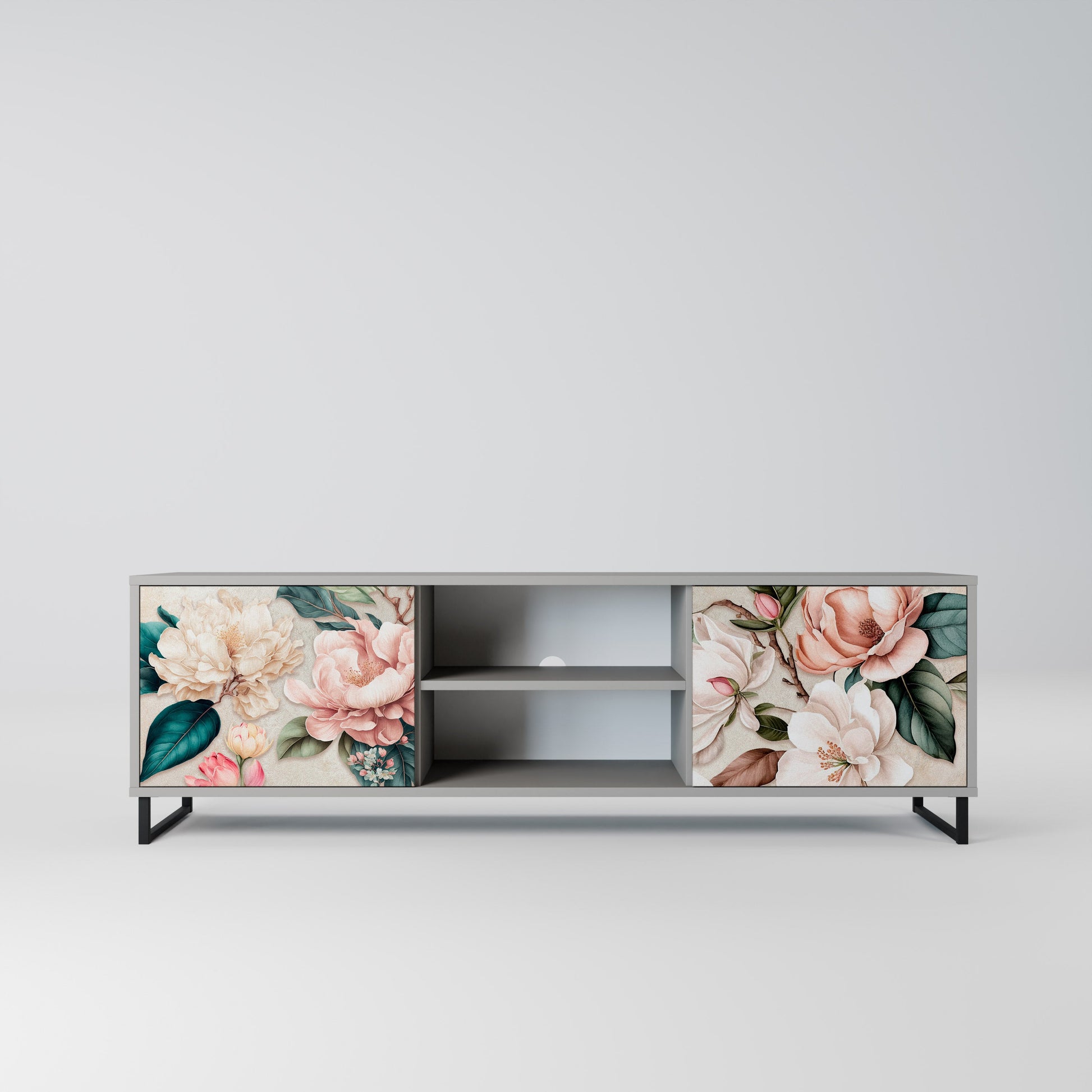 FLORAL GRACE 2-Door TV Stand in Grey Finish