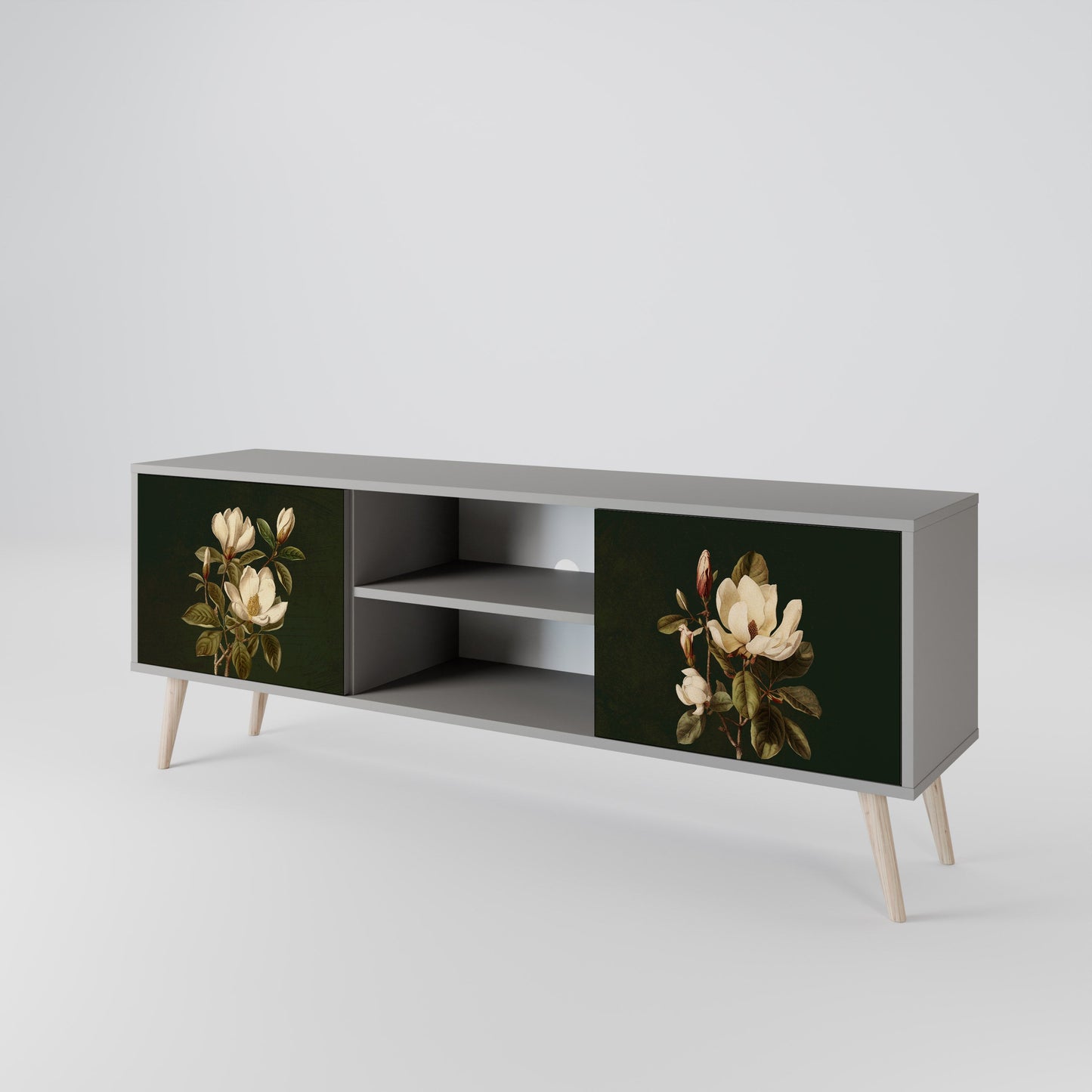 FLORAL NOIR 2-Door TV Stand in Grey Finish