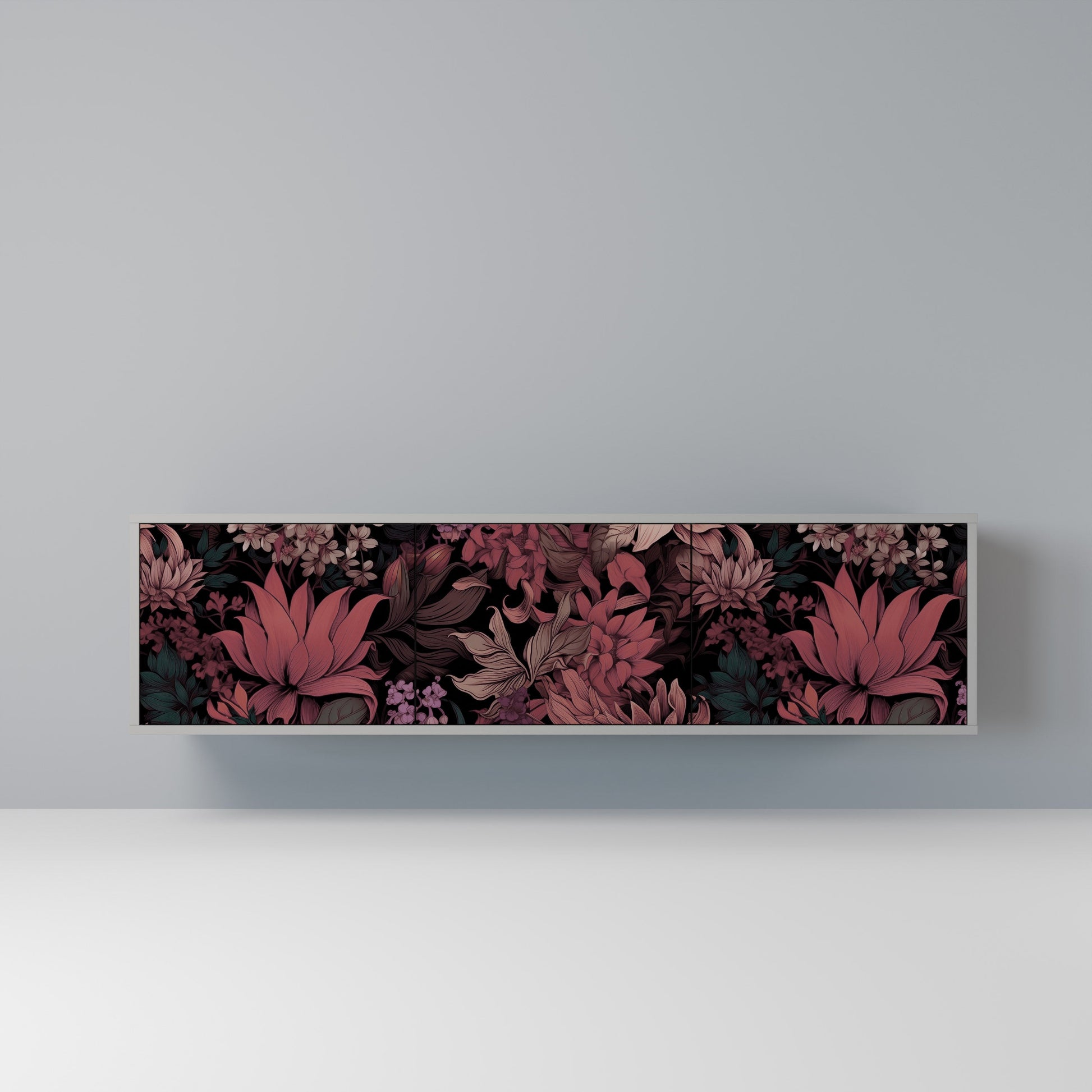 The grey body of the stand creates a refined, modern accent that pairs beautifully with industrial and minimalist arrangements. The fronts with a designer print add character and uniqueness, making this piece not only practical but also a standout decorative element.
