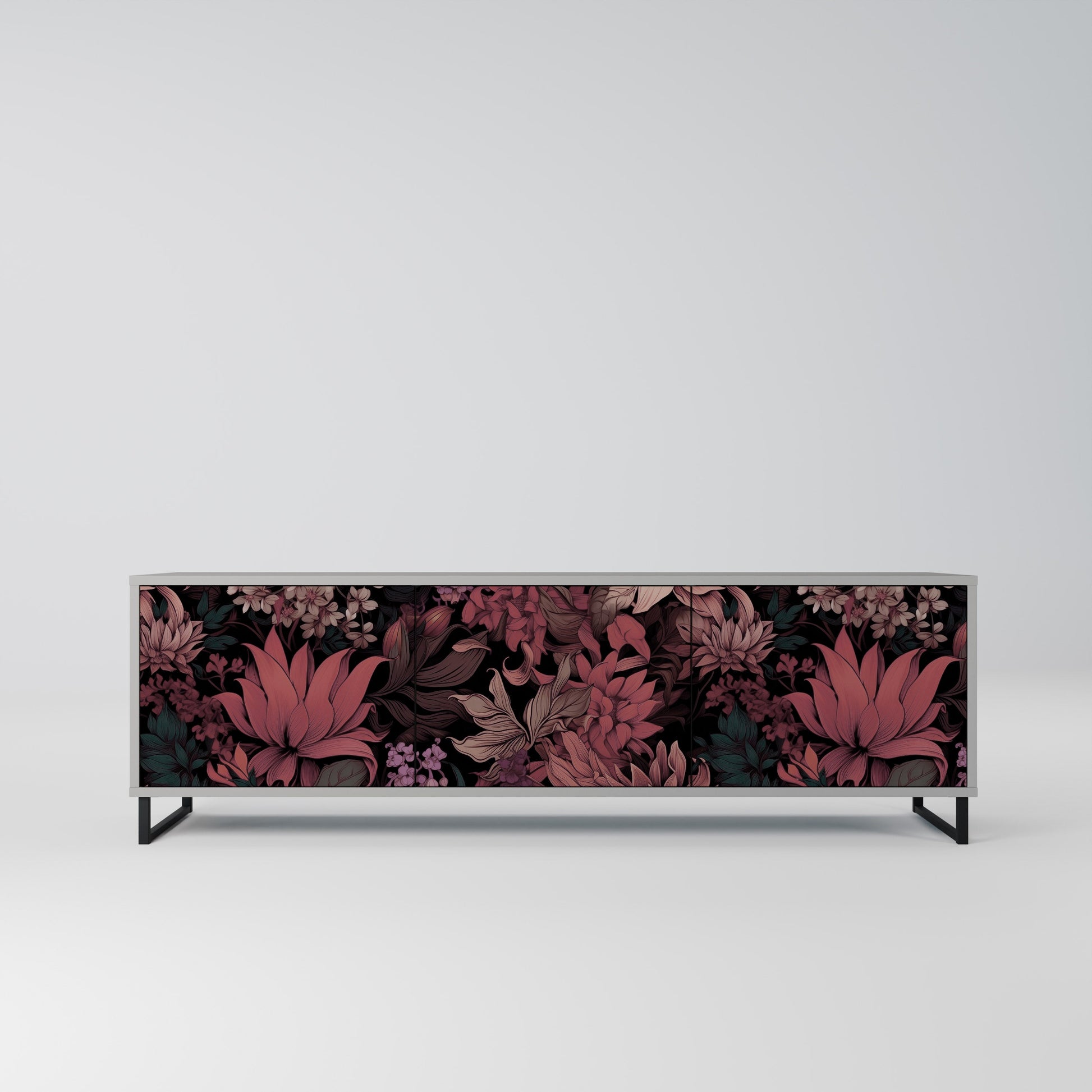 FLORAL WHISPER 3-Door TV Stand in Grey Finish