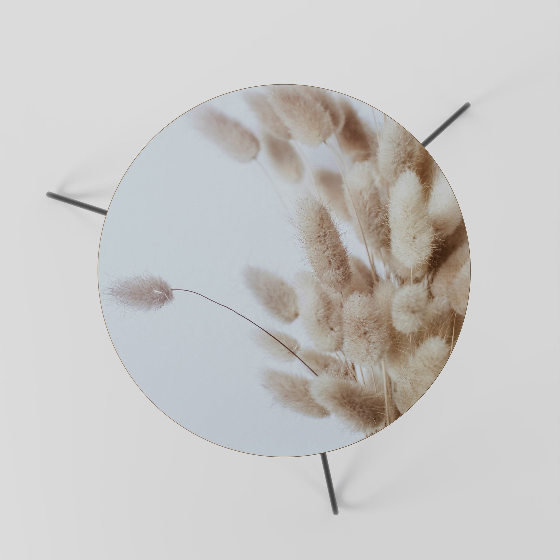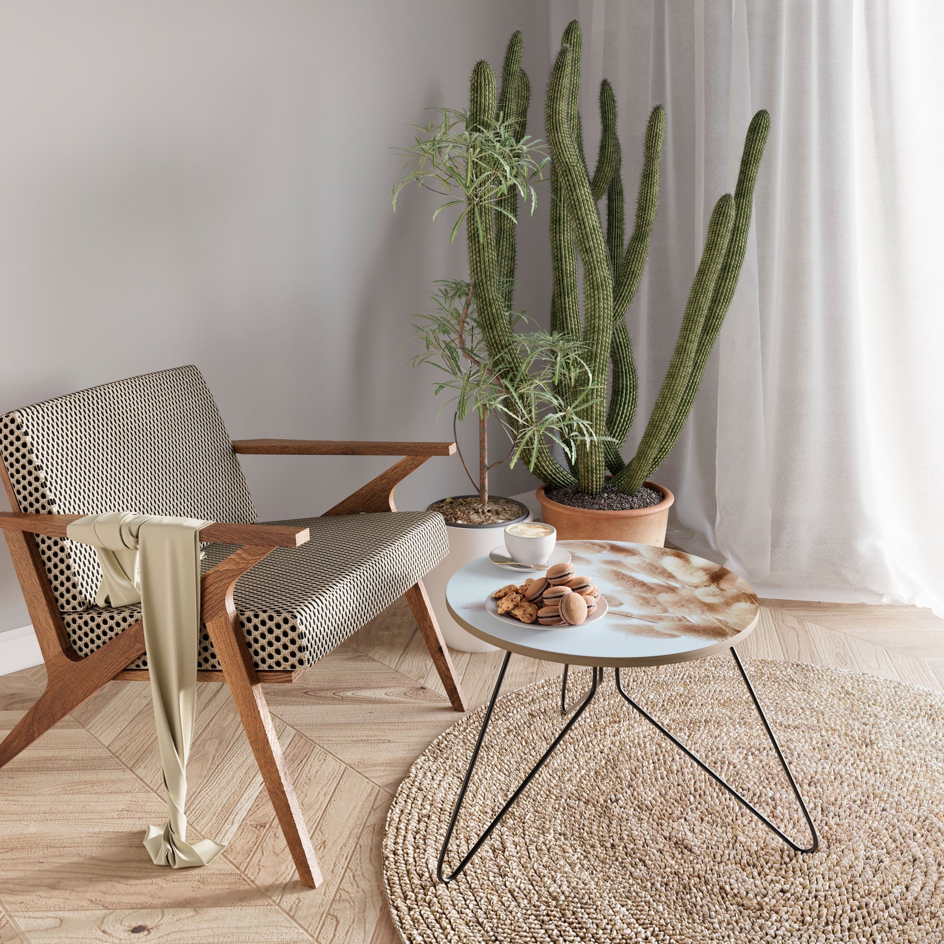 The tabletop features a high-quality printed motif, adding a distinctive artistic accent to your space. Crafted from durable chipboard covered with laminate, it ensures long-lasting use and resistance to daily wear.