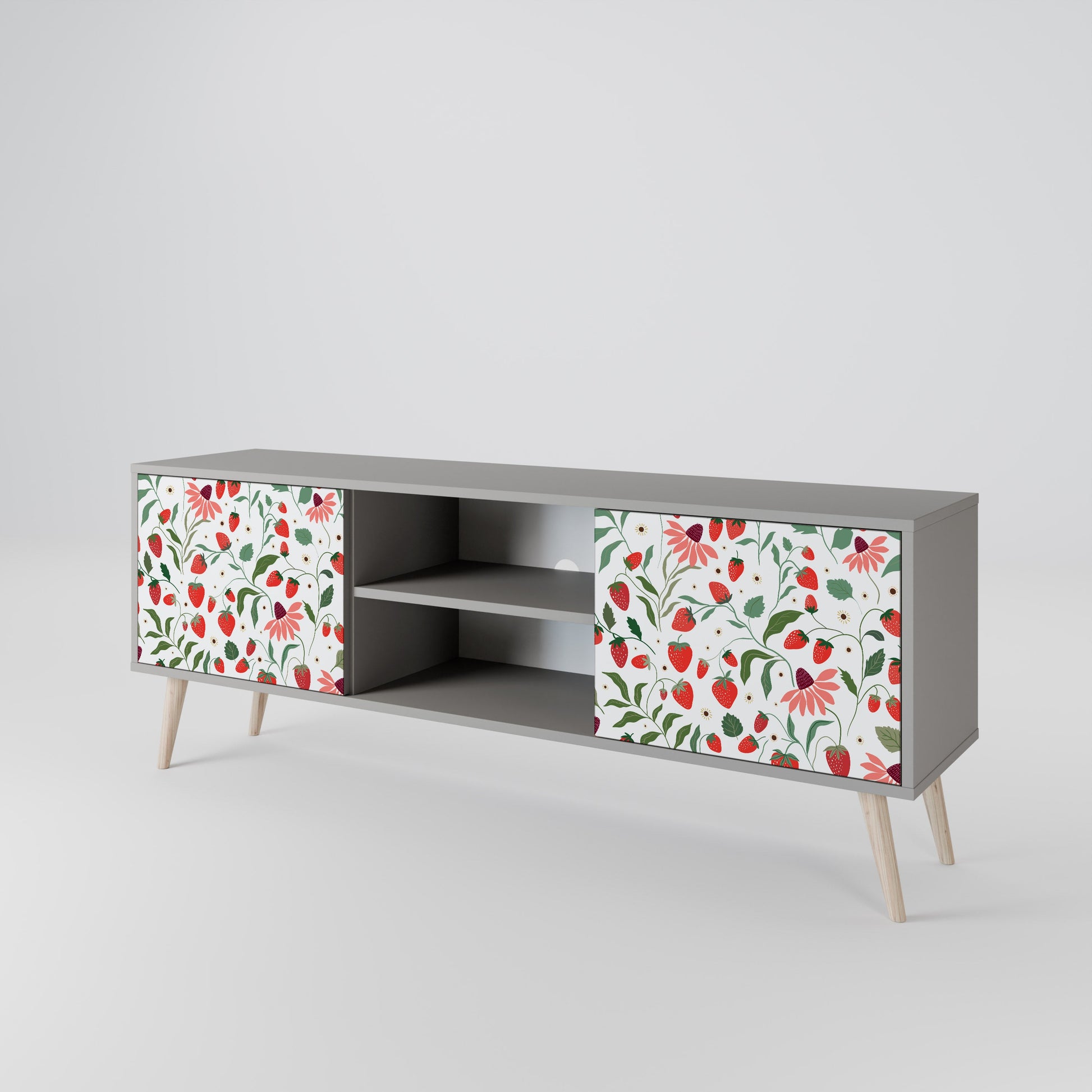 FLOWERS AND STRAWBERRIES 2-Door TV Stand in Grey Finish