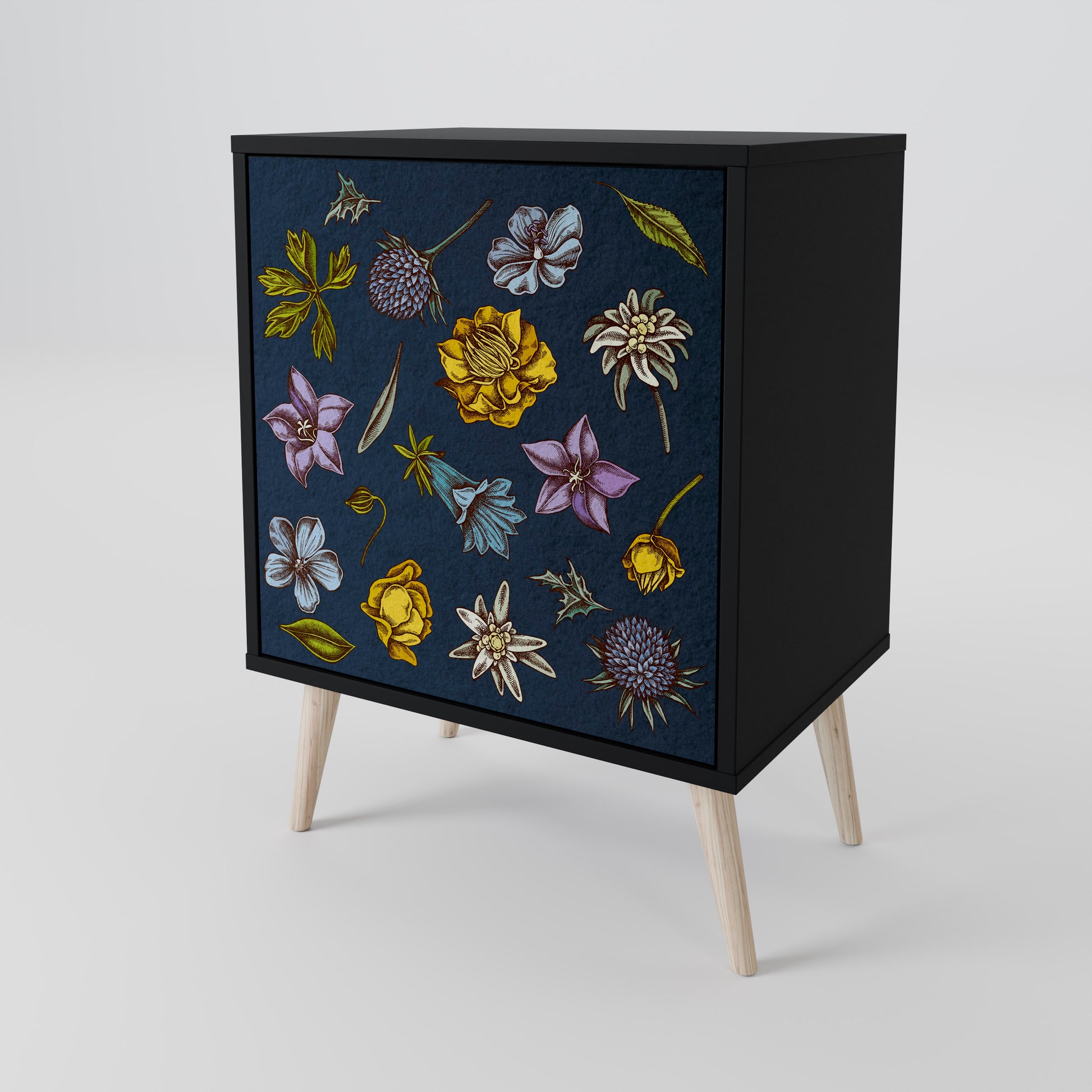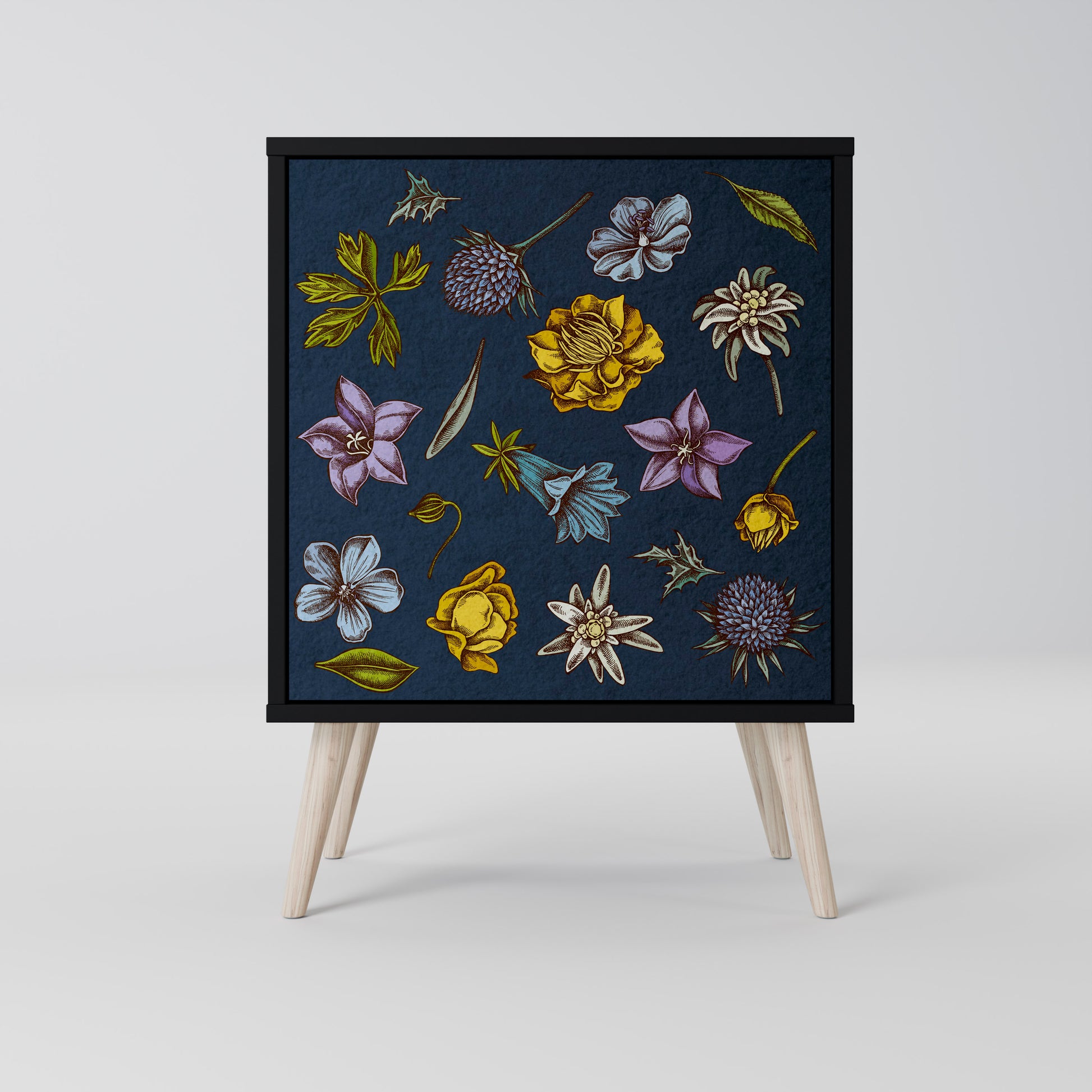 FLOWERS ON NAVY BLUE 1-Door Sideboard in Black Finish