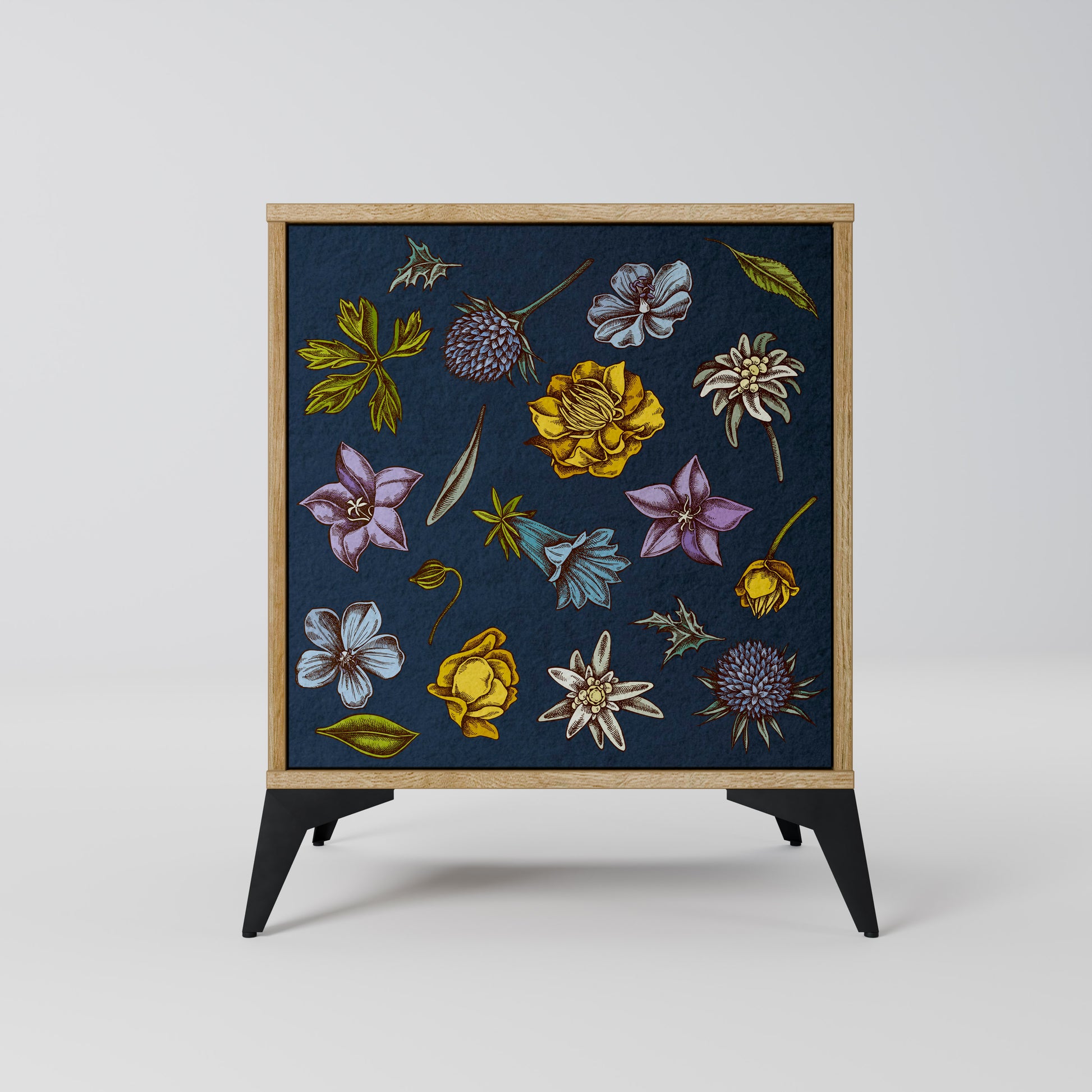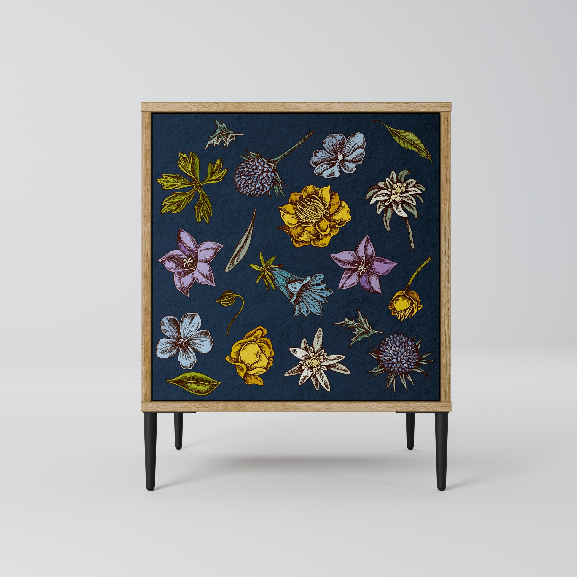 FLOWERS ON NAVY BLUE 1-Door Sideboard in Oak Effect