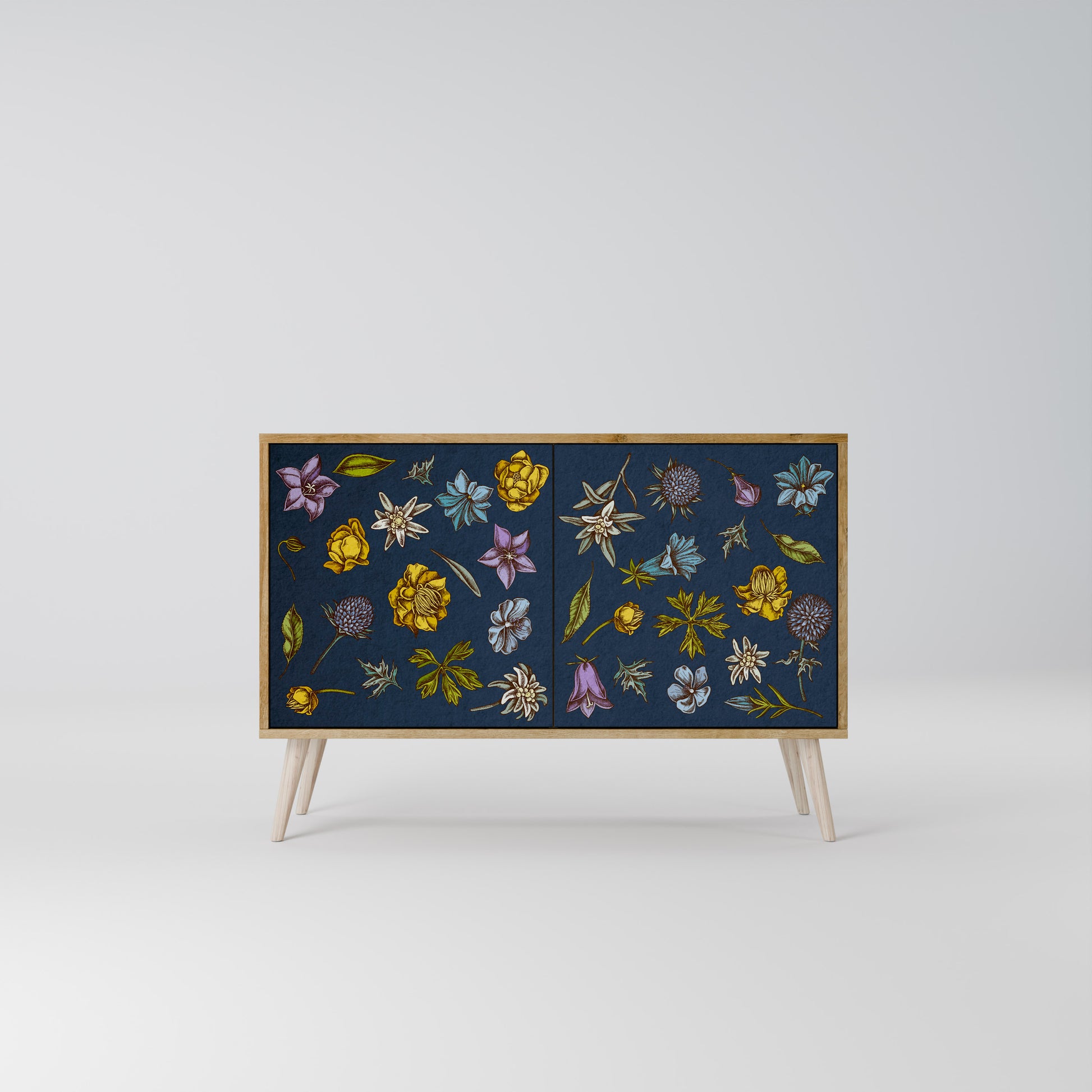 FLOWERS ON NAVY BLUE 2-Door Sideboard in Oak Effect