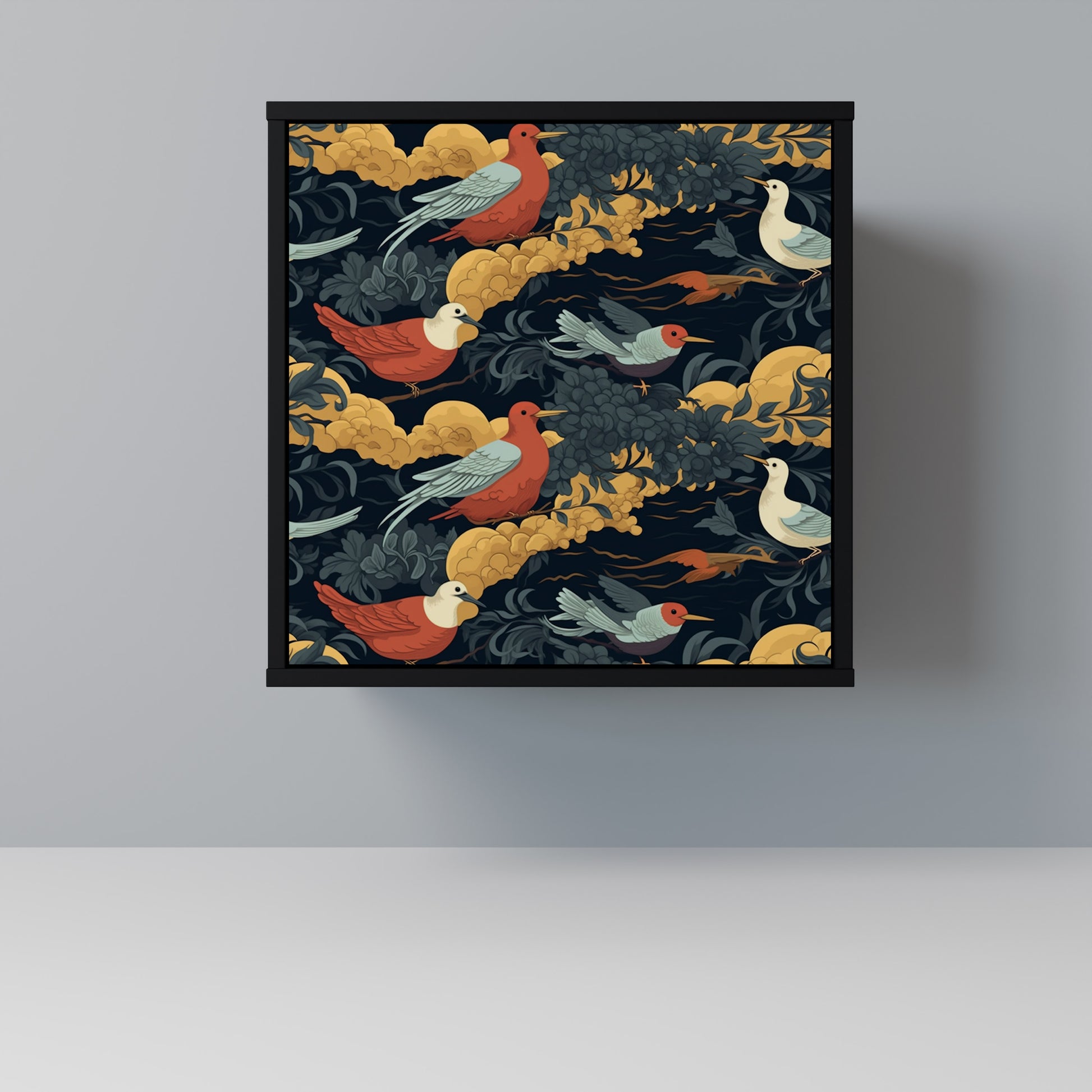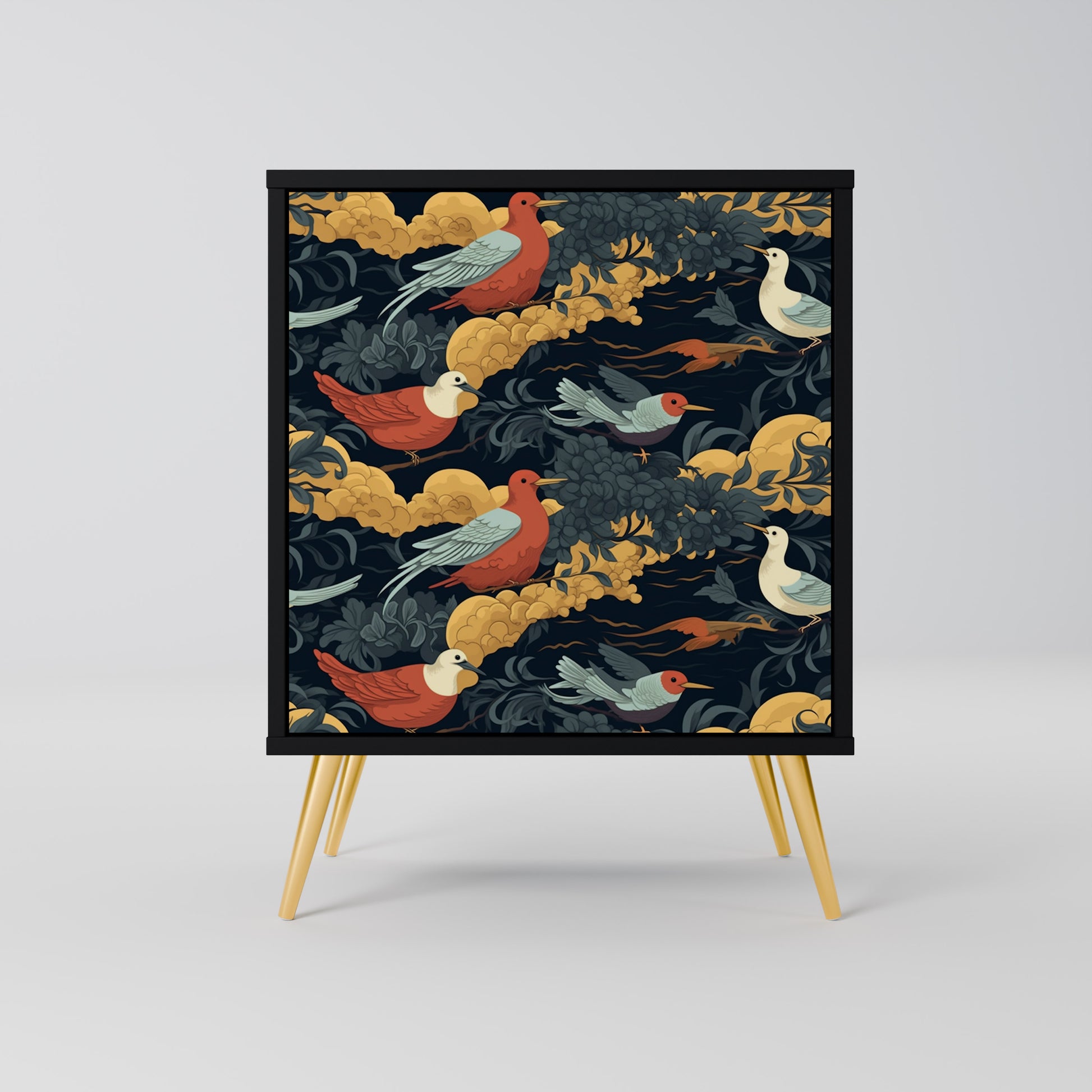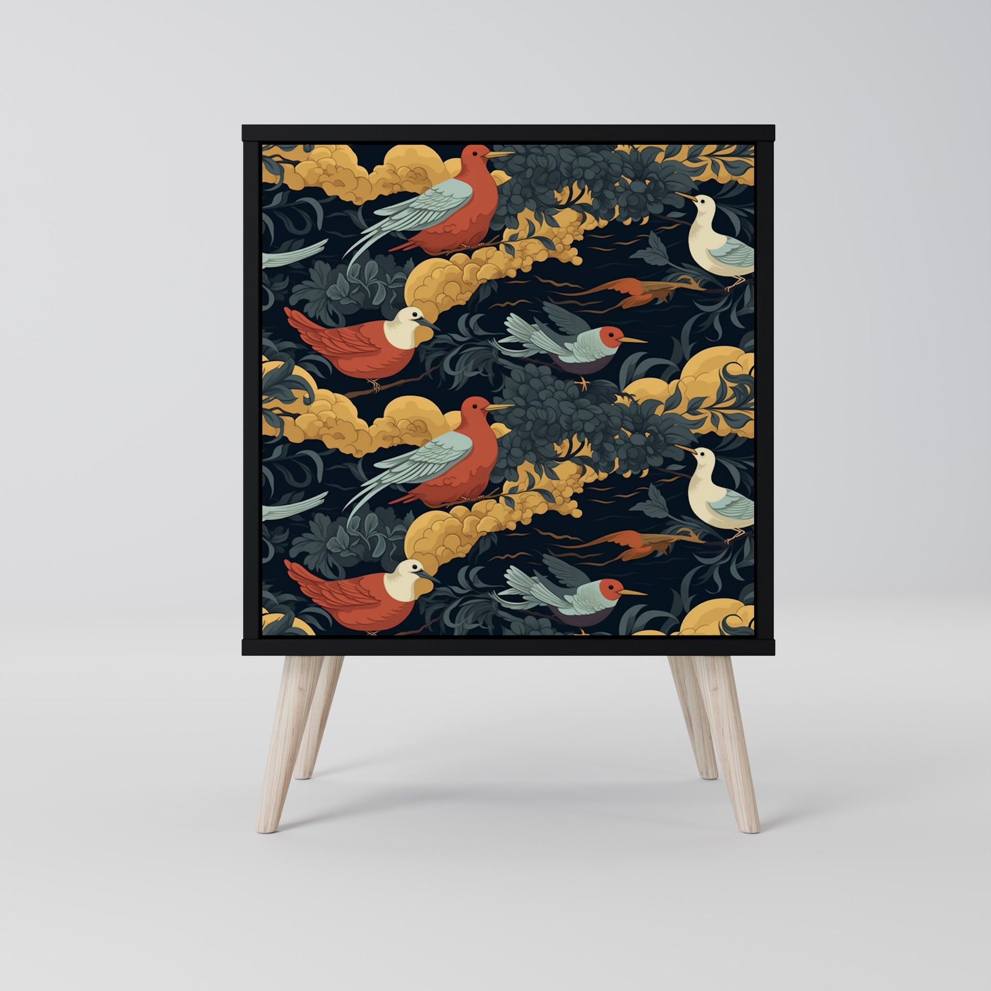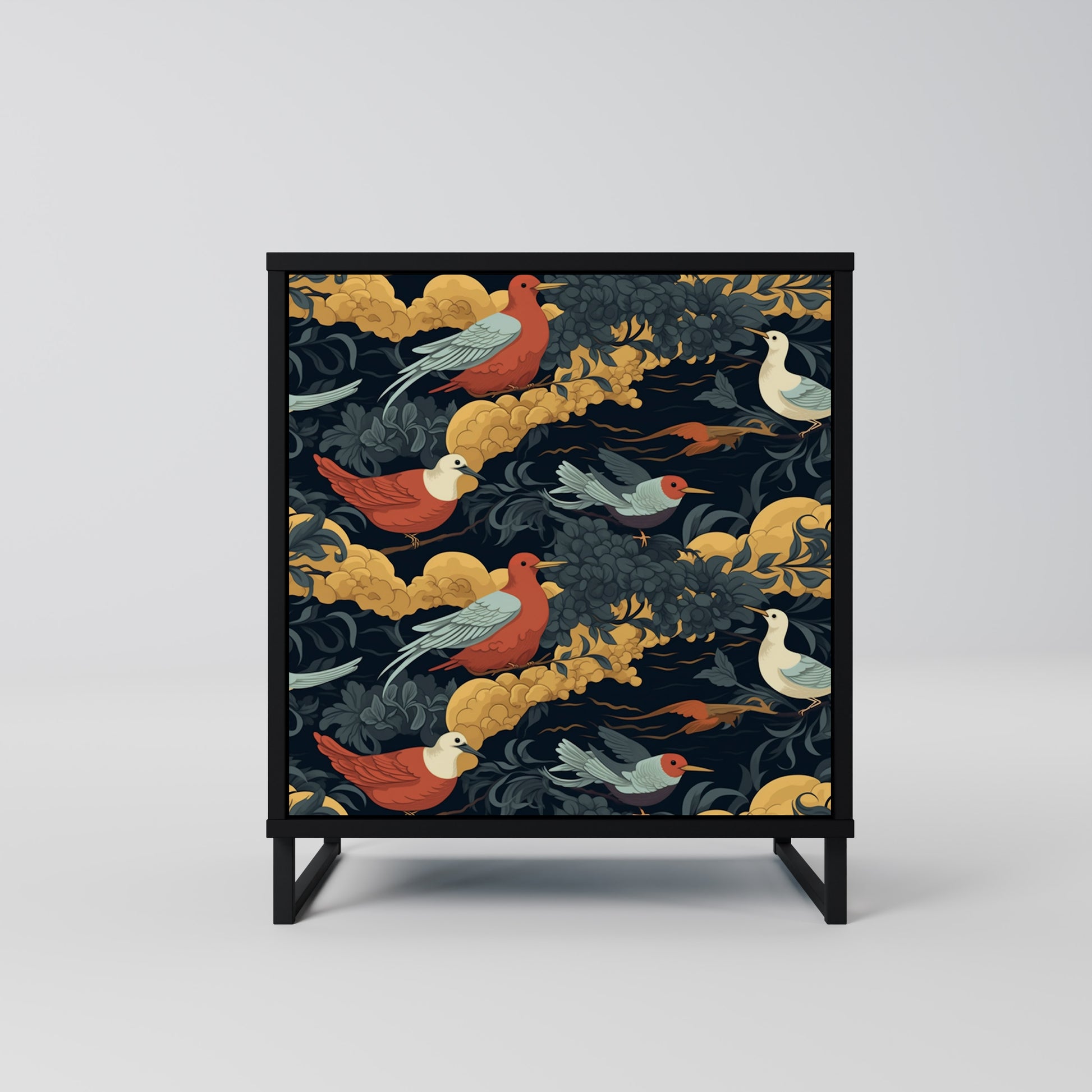 This compact yet remarkably elegant piece of furniture impresses with its minimalist design, perfectly fitting into both modern and classic interiors. The black body emphasizes the furniture’s bold character, while the fronts with a unique print add an artistic touch.