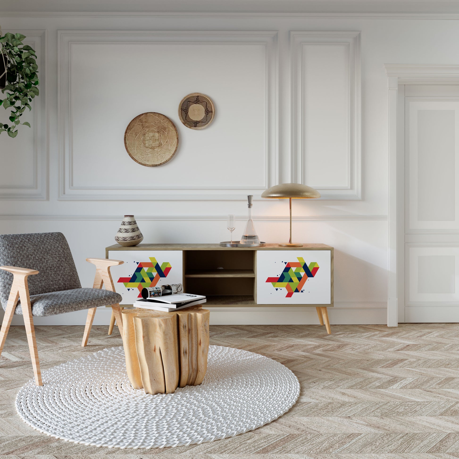 We invite you to discover our 2-door TV stand that combines simplicity with exceptional style. Made from the highest-quality materials, this elegant piece in oak tones, featuring wooden doors with a printed finish, is the perfect addition to any modern living room.