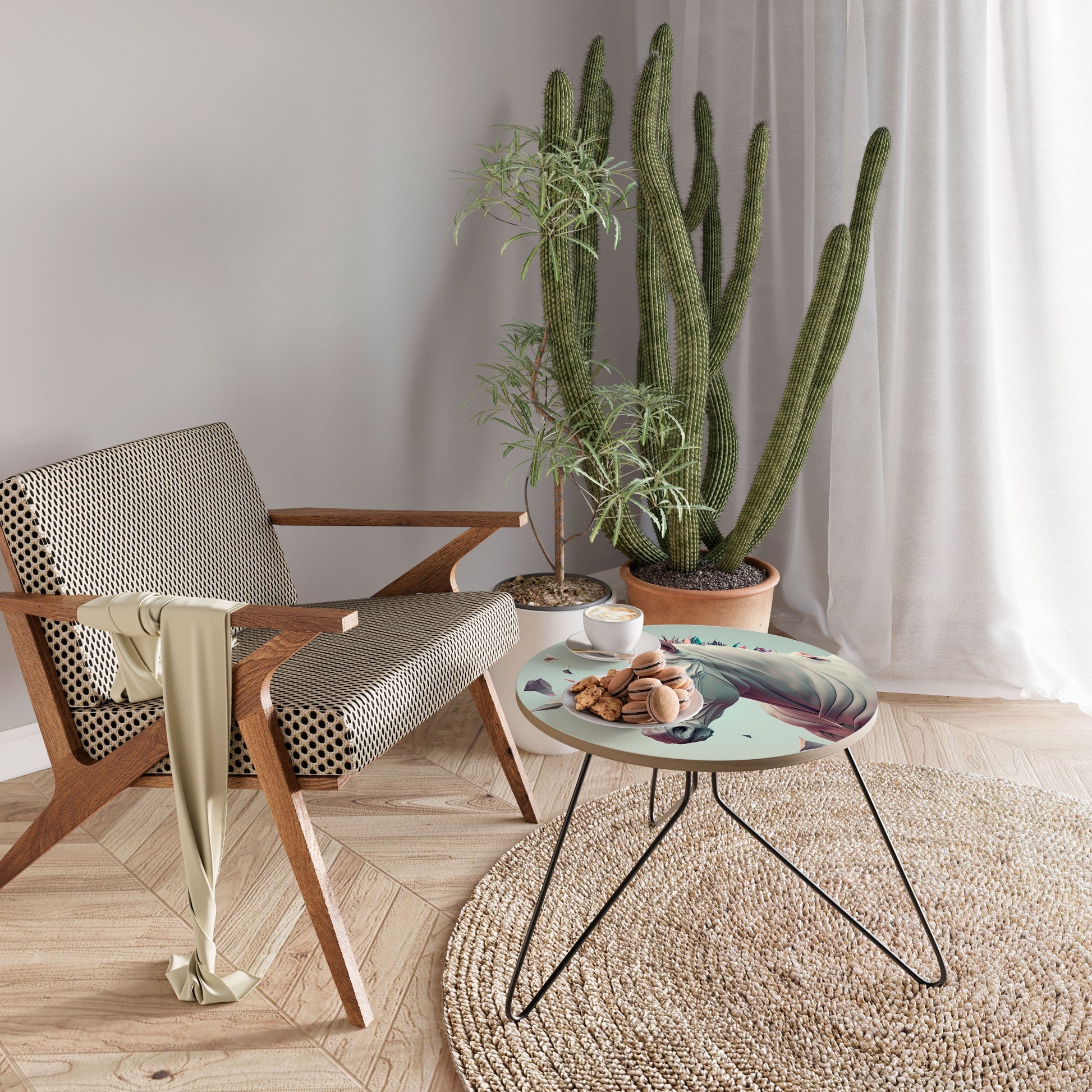 The tabletop features a high-quality printed motif, adding a distinctive artistic accent to your space. Crafted from durable chipboard covered with laminate, it ensures long-lasting use and resistance to daily wear.
