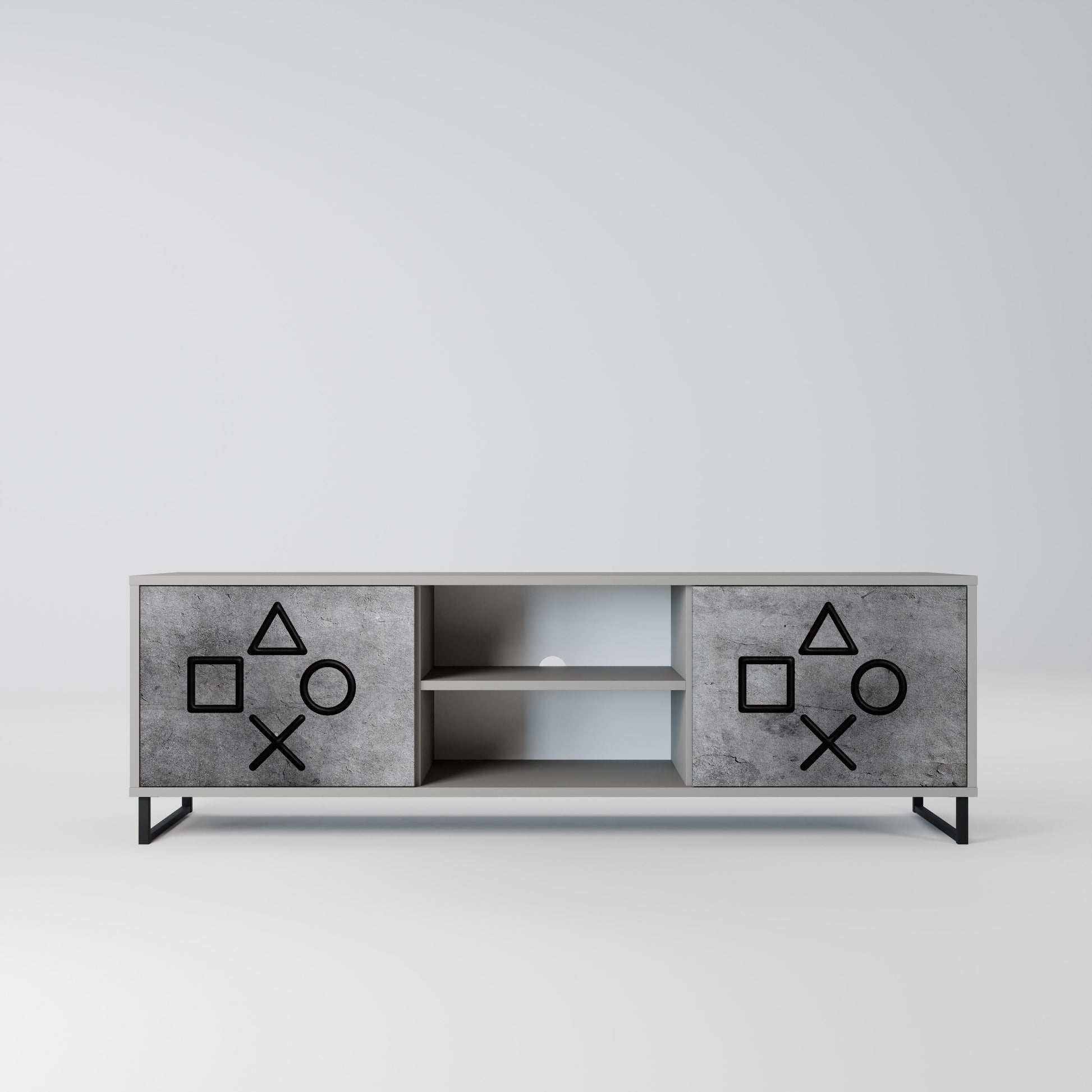 Minimalist design and functionality in one – our 2-door TV stand with a grey body is the perfect solution for fans of modern and industrial interiors alike. Its compact size and unique design make it an ideal choice for the living room, offering stylish and practical storage.