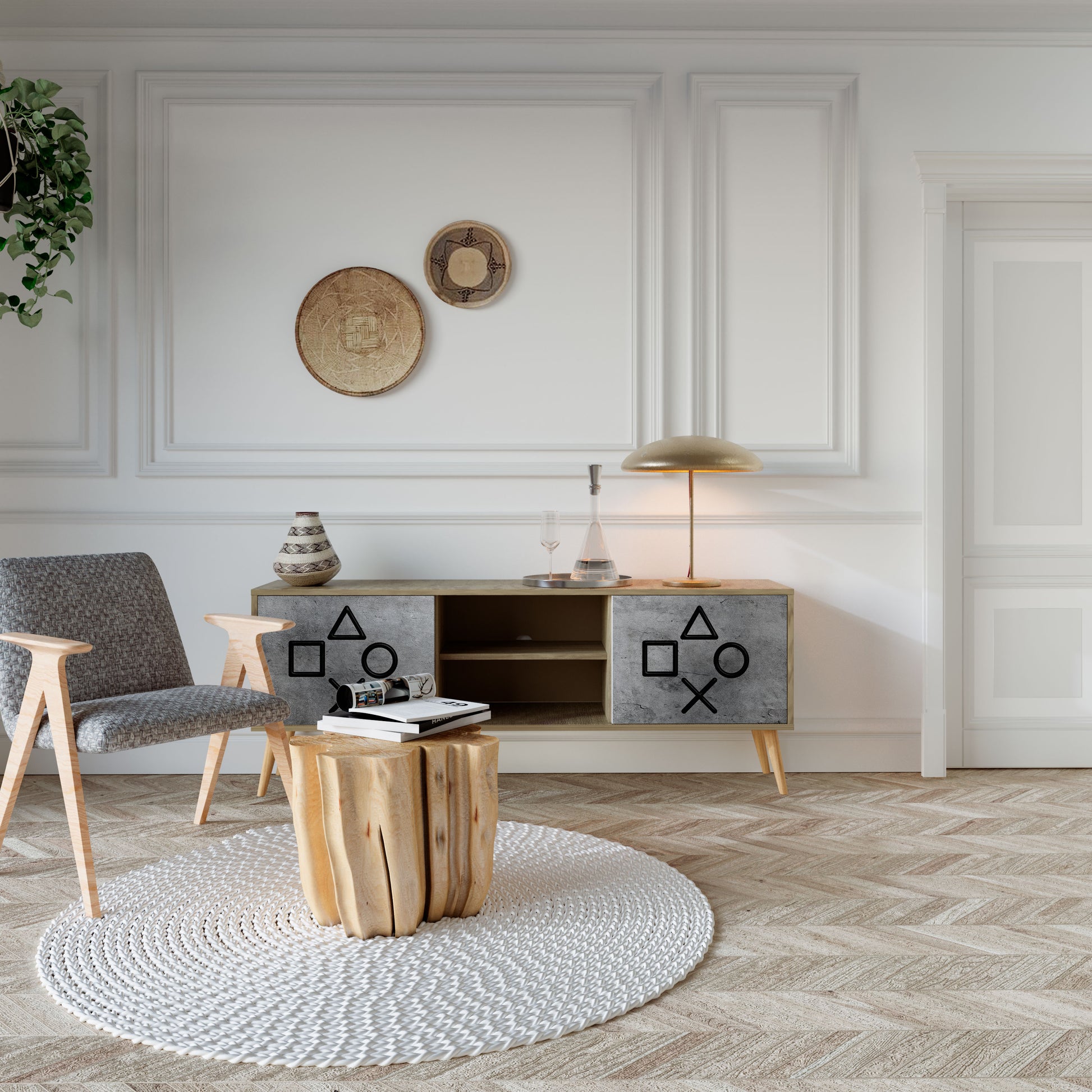 We invite you to discover our 2-door TV stand that combines simplicity with exceptional style. Made from the highest-quality materials, this elegant piece in oak tones, featuring wooden doors with a printed finish, is the perfect addition to any modern living room.