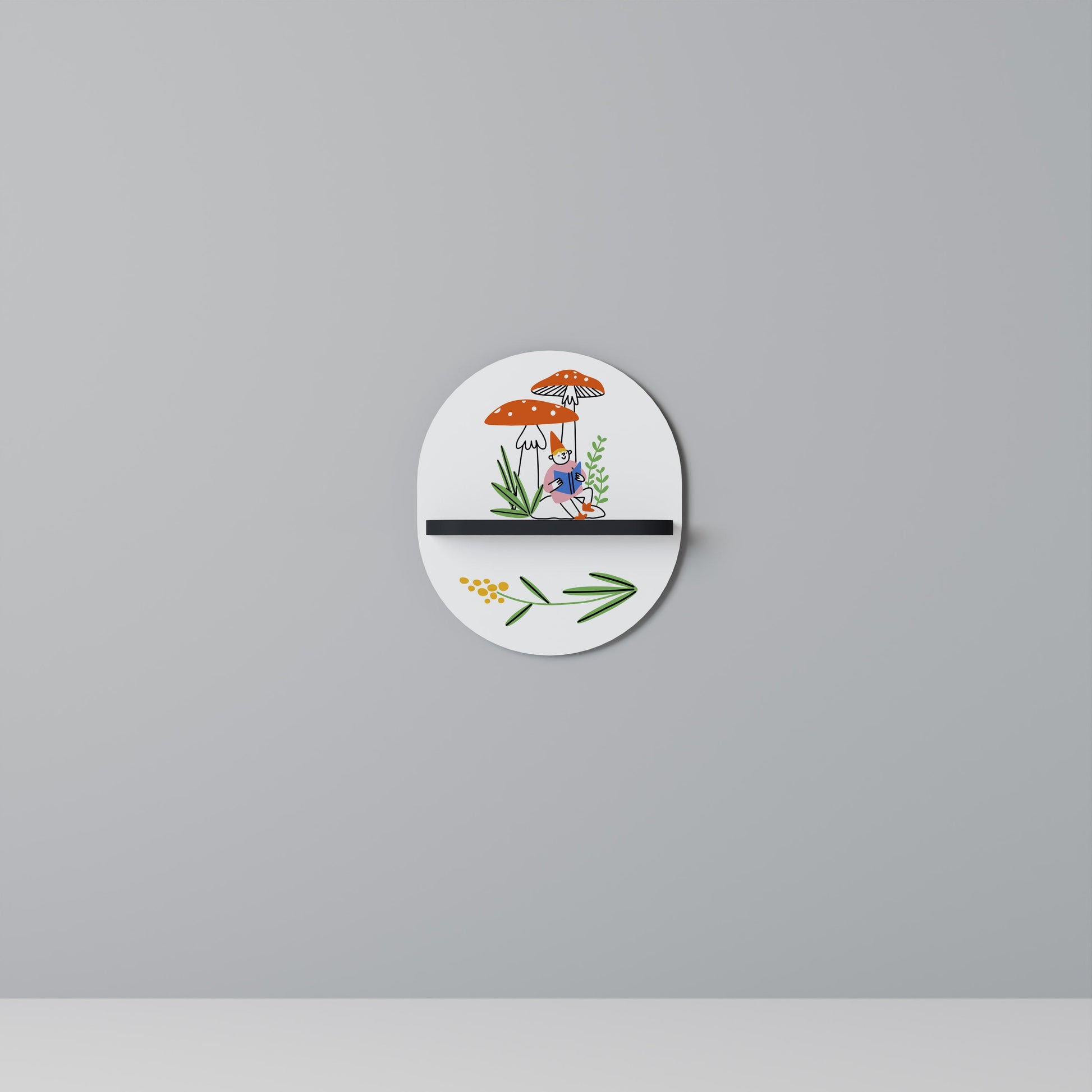 GARDEN GNOMES Oval Art Shelf In Black Finish