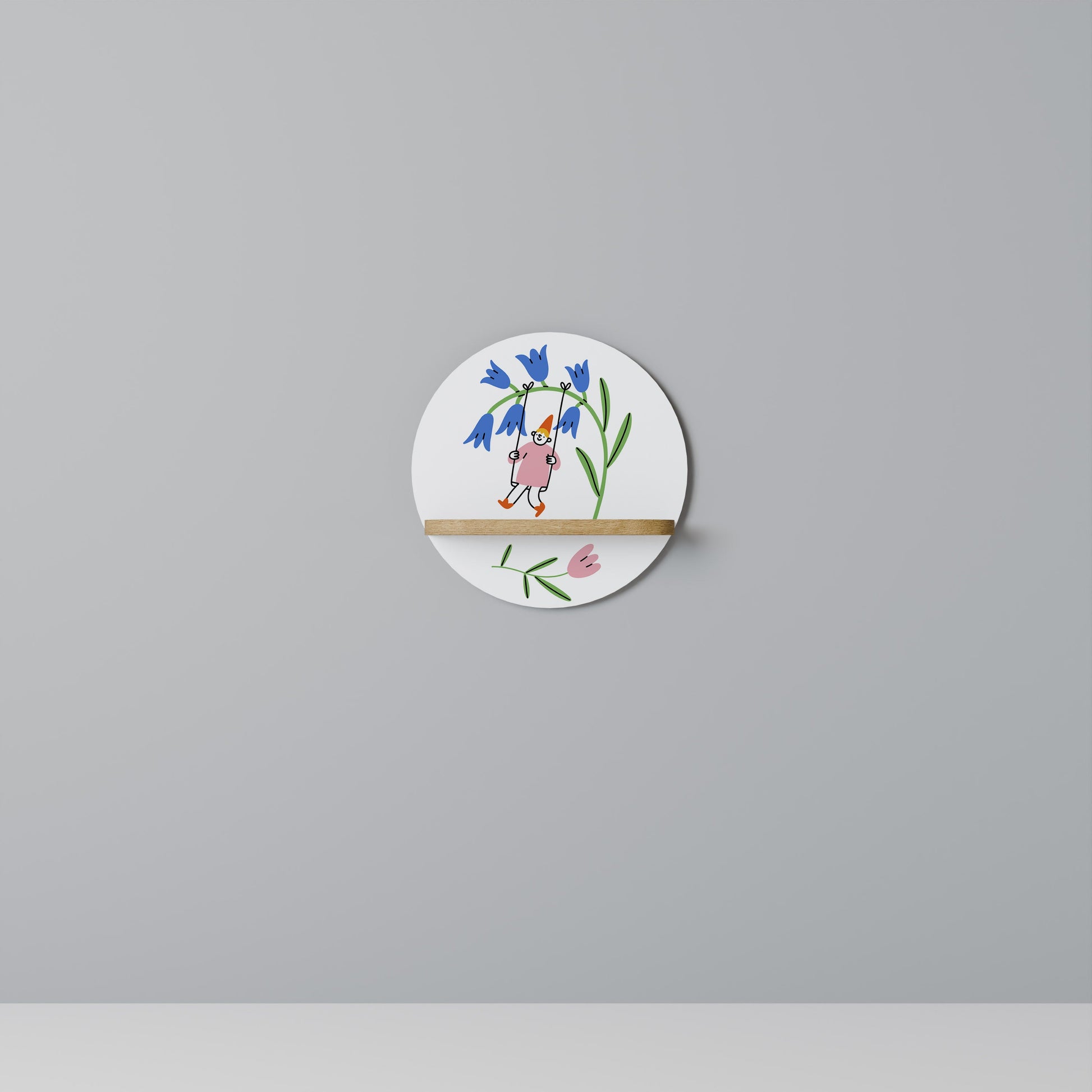 GARDEN JOY Round Art Shelf In Oak Effect