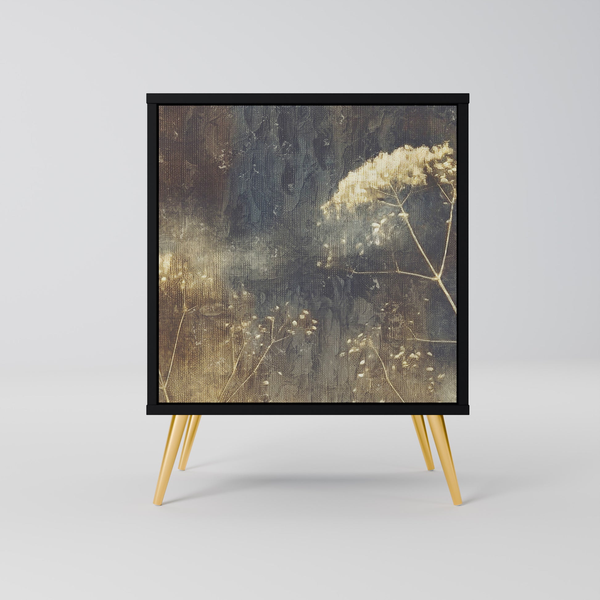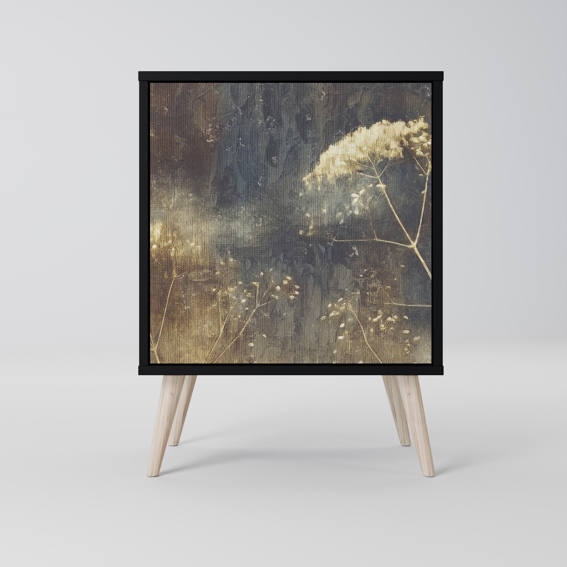 This compact yet remarkably elegant piece of furniture impresses with its minimalist design, perfectly fitting into both modern and classic interiors. The black body emphasizes the furniture’s bold character, while the fronts with a unique print add an artistic touch.