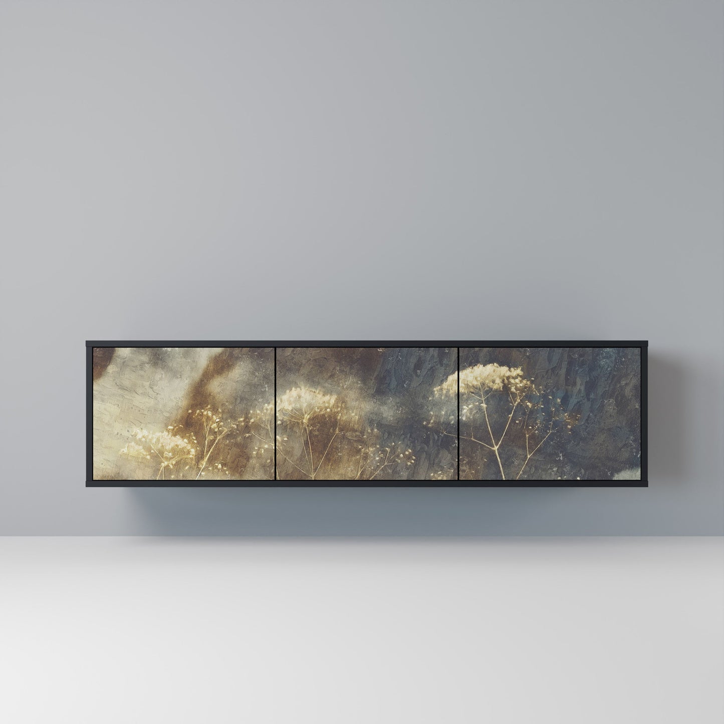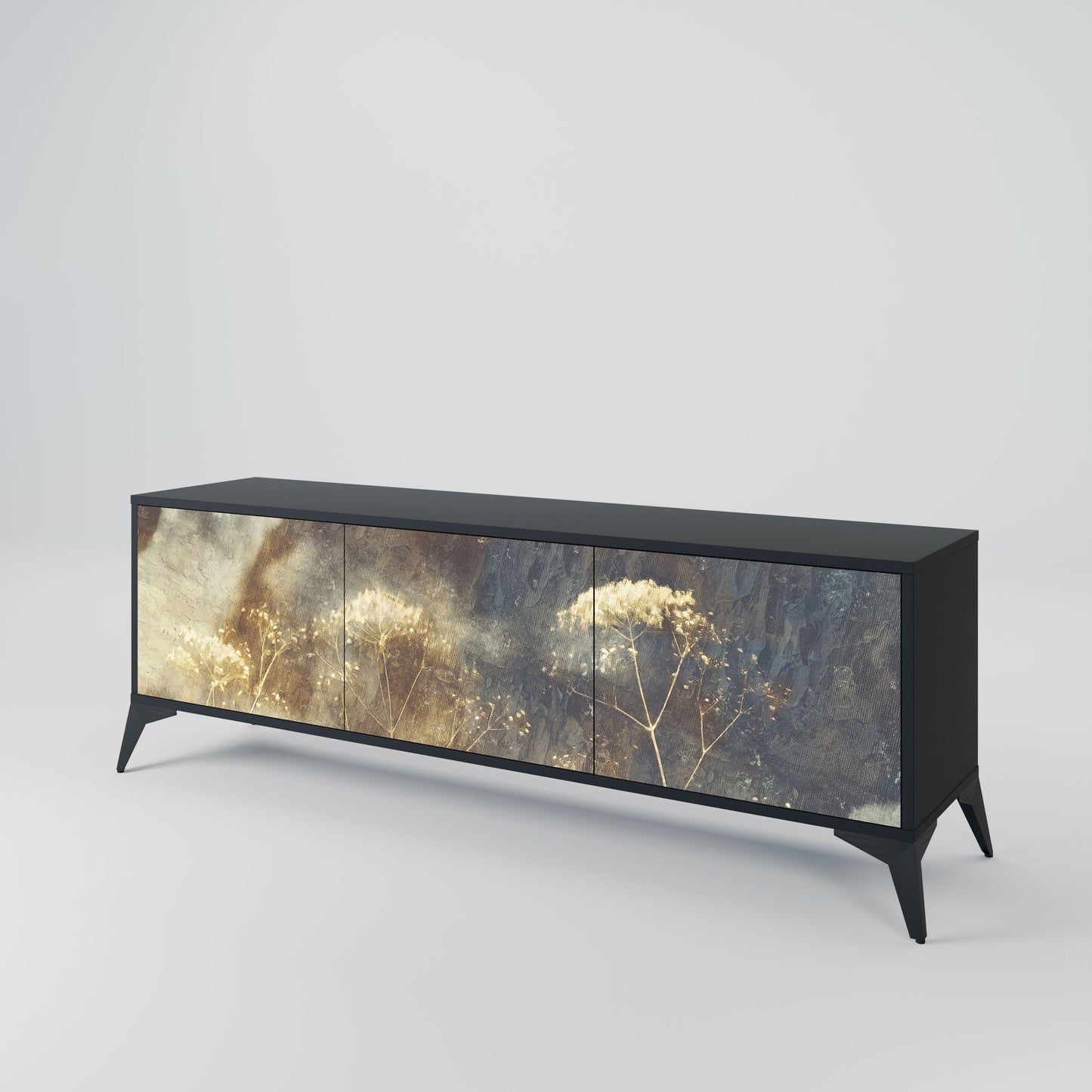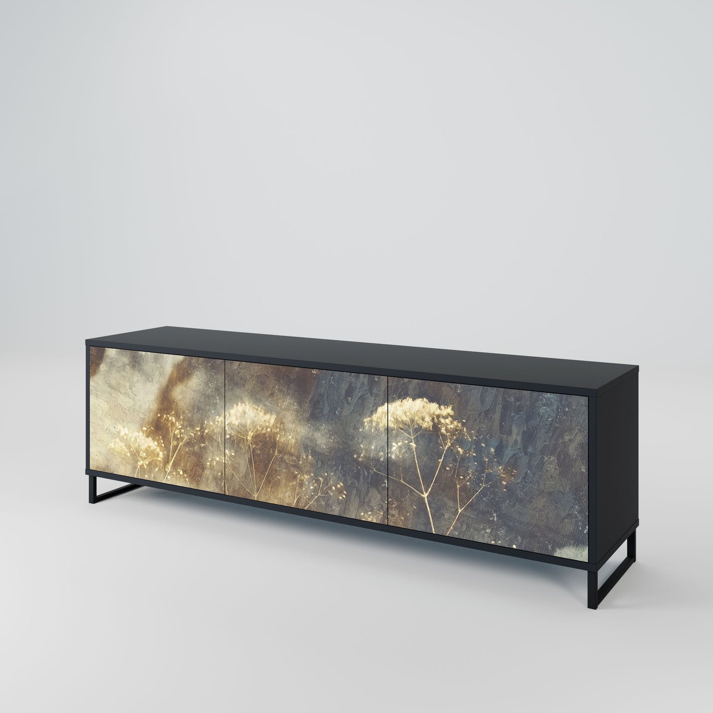 The black body of the stand creates a bold, modern accent that pairs beautifully with industrial and minimalist arrangements. The fronts with a designer print add character and uniqueness, making this piece not only practical but also a standout decorative element.