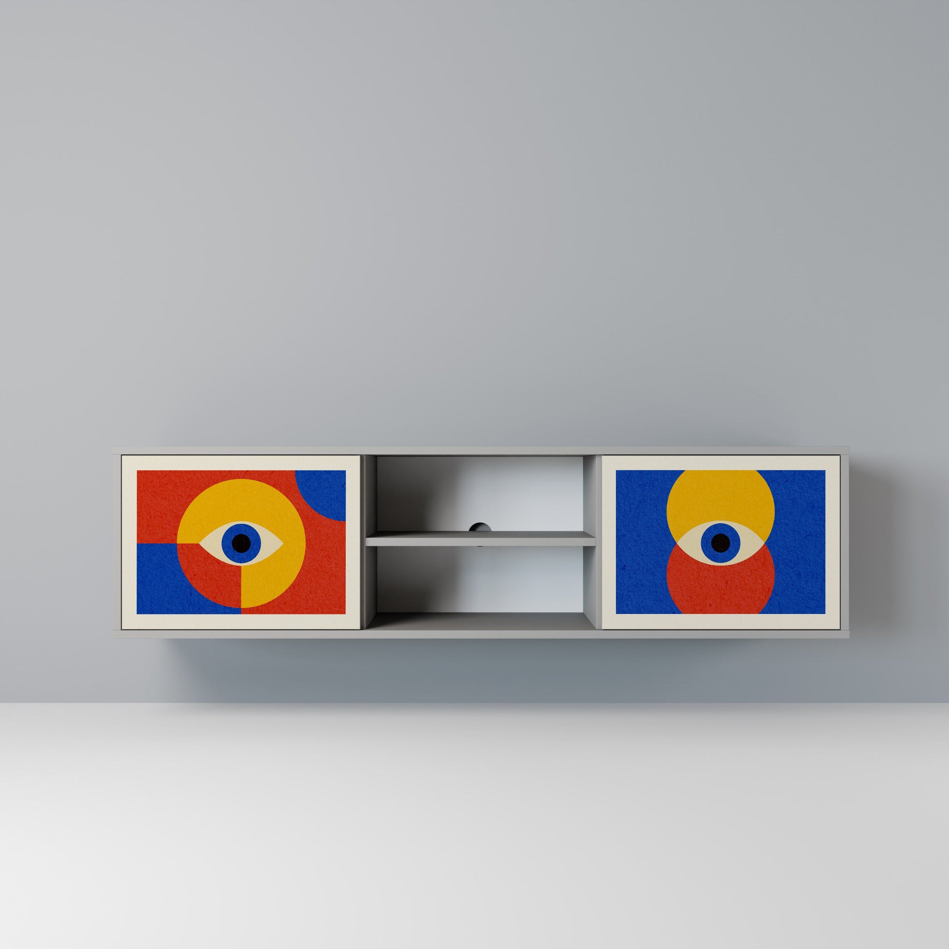 GEOMETRIC EYES 2-Door TV Stand in Grey Finish