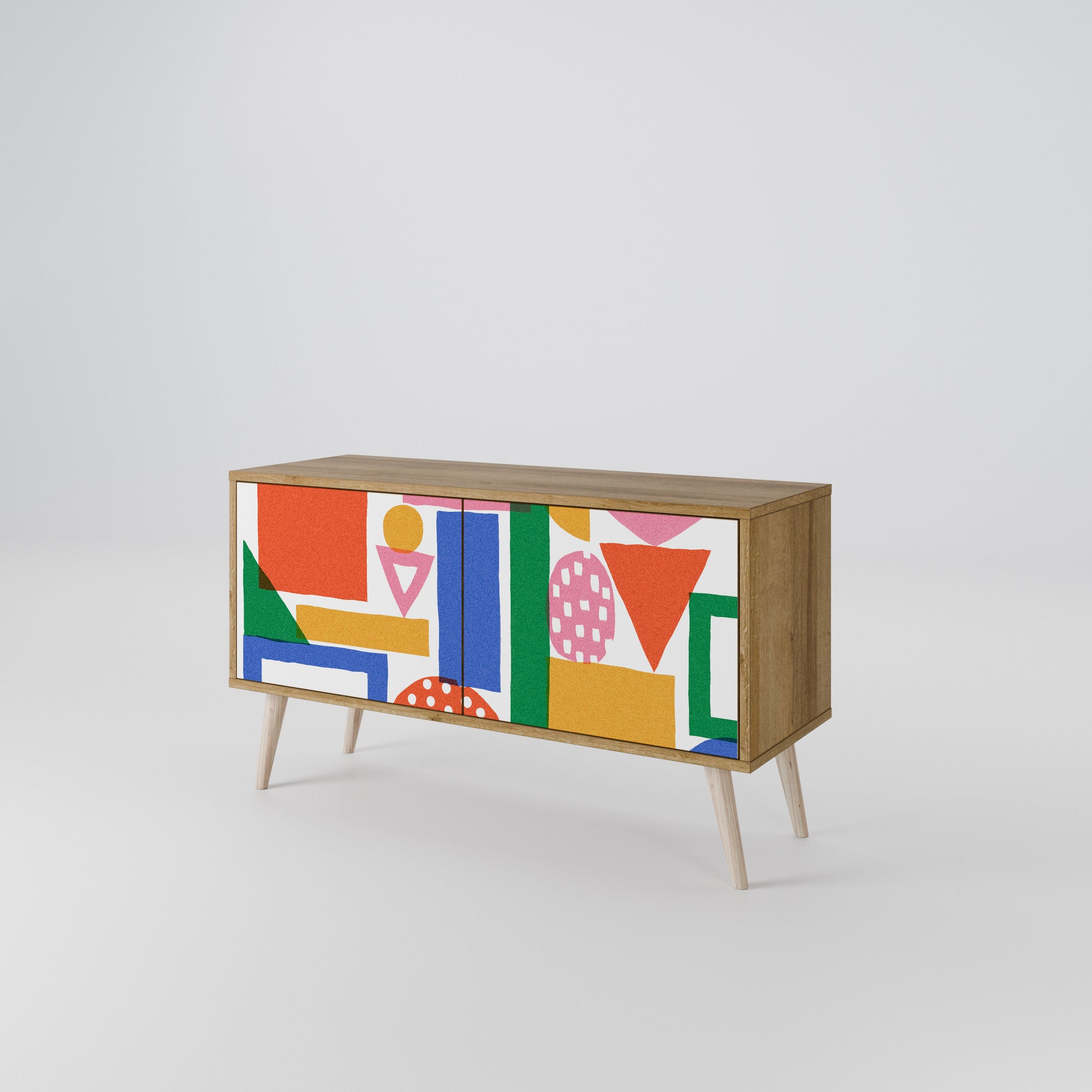 As the shorter sibling of our 3-door model, this cabinet is specifically designed for smaller living rooms, studios, or bedrooms where space is at a premium. Despite its more compact footprint, it maintains a fully enclosed front with two doors, providing a seamless, minimalist look that keeps your multimedia accessories tucked away from view.