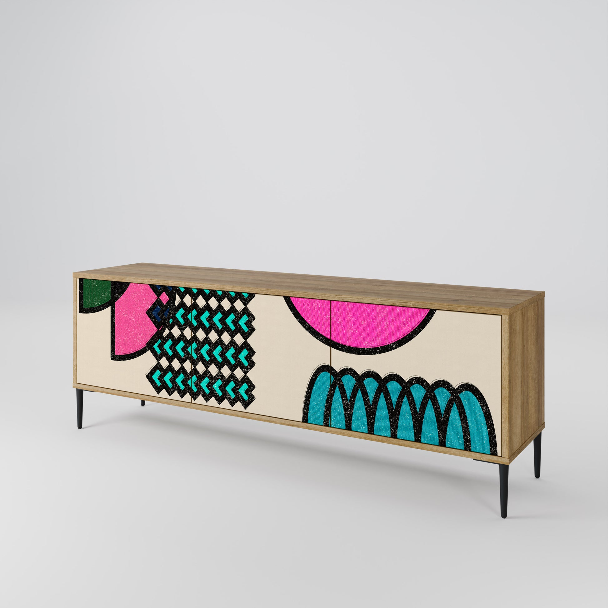 GEOMETRIC RHAPSODY 3-Door TV Stand in Oak Effect