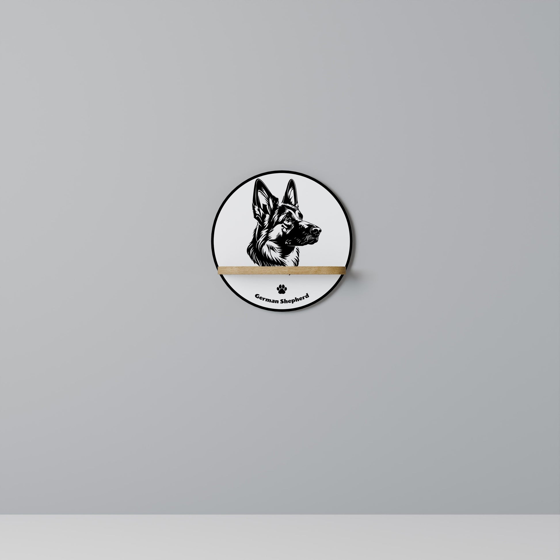 GERMAN SHEPARD Round Art Shelf In Oak Effect