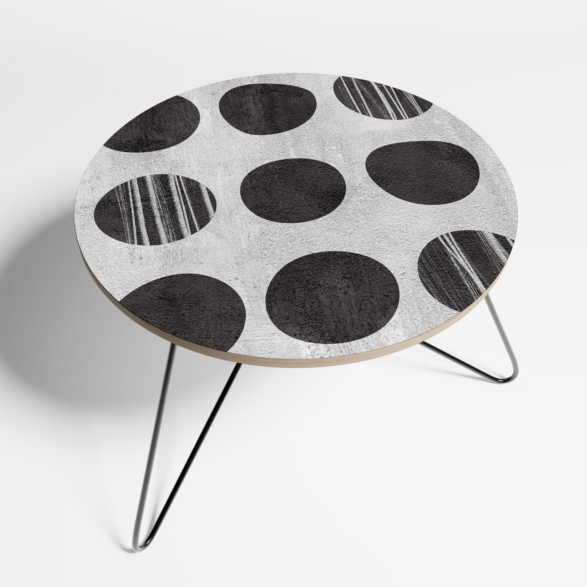 The tabletop features a high-quality printed motif, adding a distinctive artistic accent to your space. Crafted from durable chipboard covered with laminate, it ensures long-lasting use and resistance to daily wear.